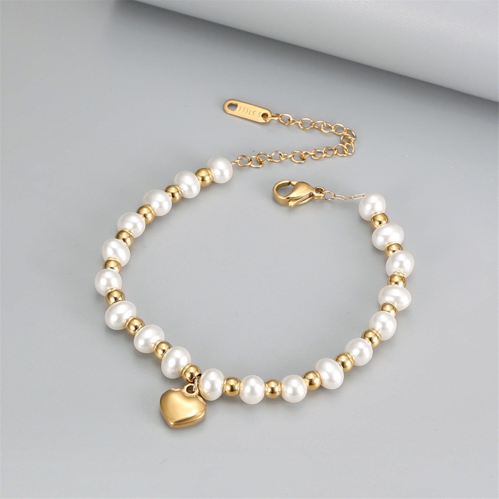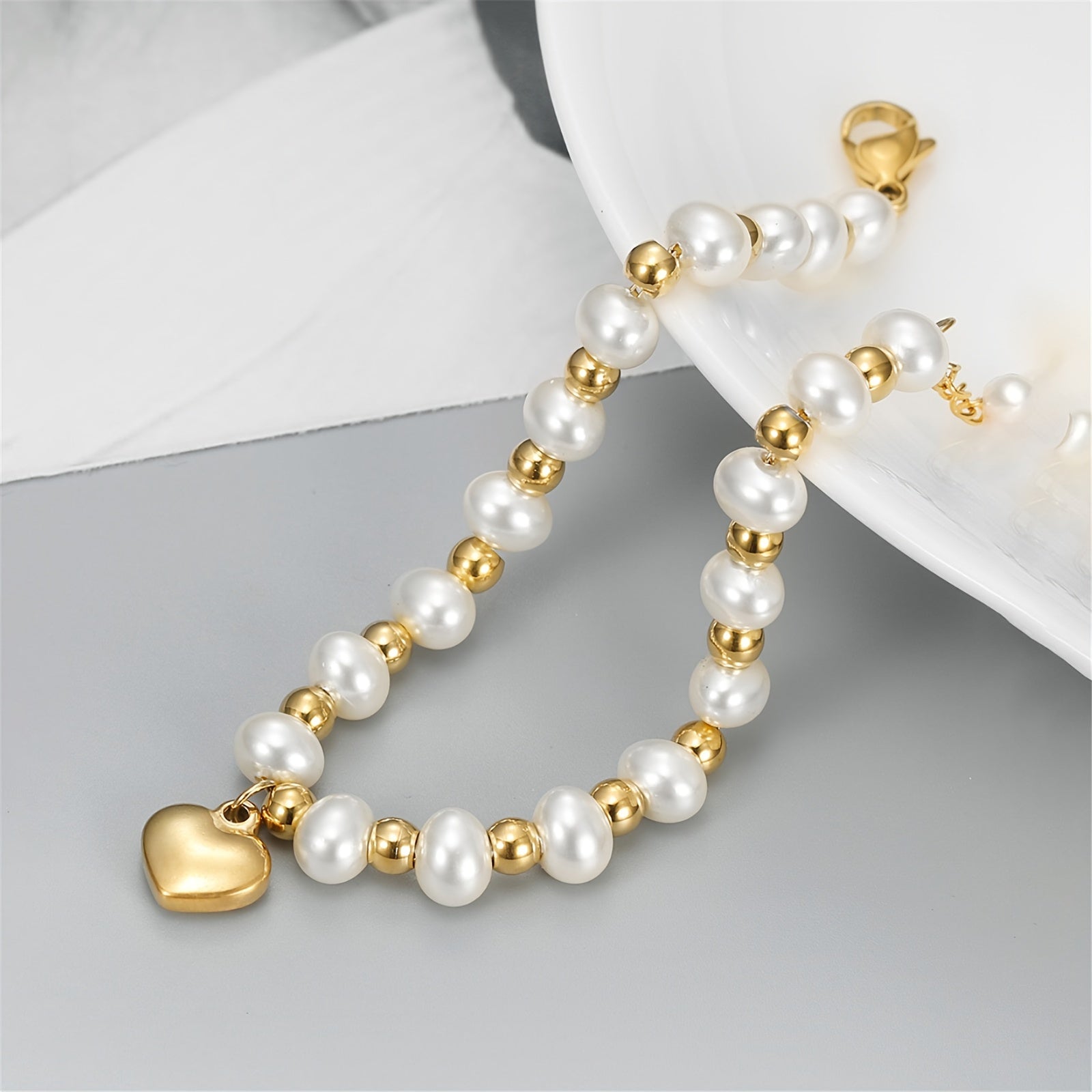 Sevgi kuni zargarlik sovg'asi: Minimalist qo'l bilaguzuk, yurak shaklidagi pendant va soxta marvaridlar, zanglamas po'latdan yasalgan to'plar