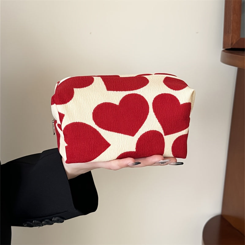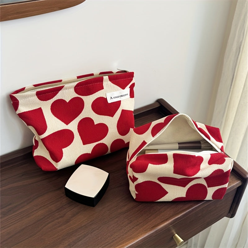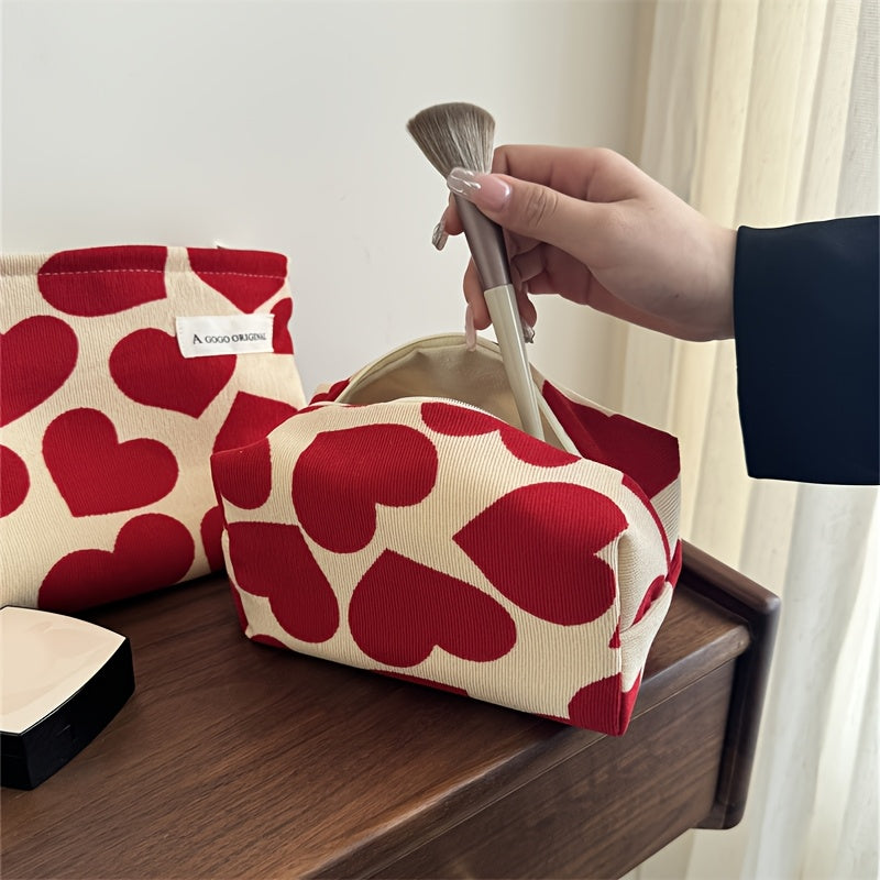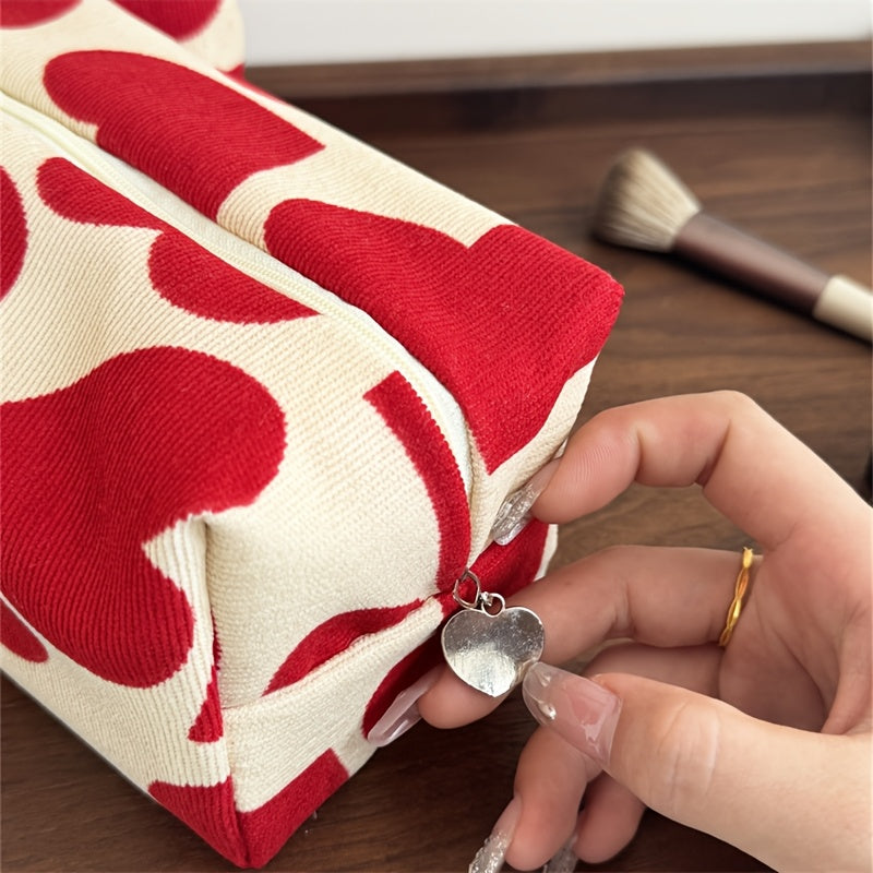 Ayollar uchun velvet qizil makup sumkasi. Sayohat uchun zarur bo'lgan buyumlar, teri parvarishi, kozmetika va boshqalarni saqlash uchun ideal. Tanga, lab bo'yog'i, makup cho'tkasi, lak va gigiena uchun bo'linmalarni o'z ichiga oladi.
