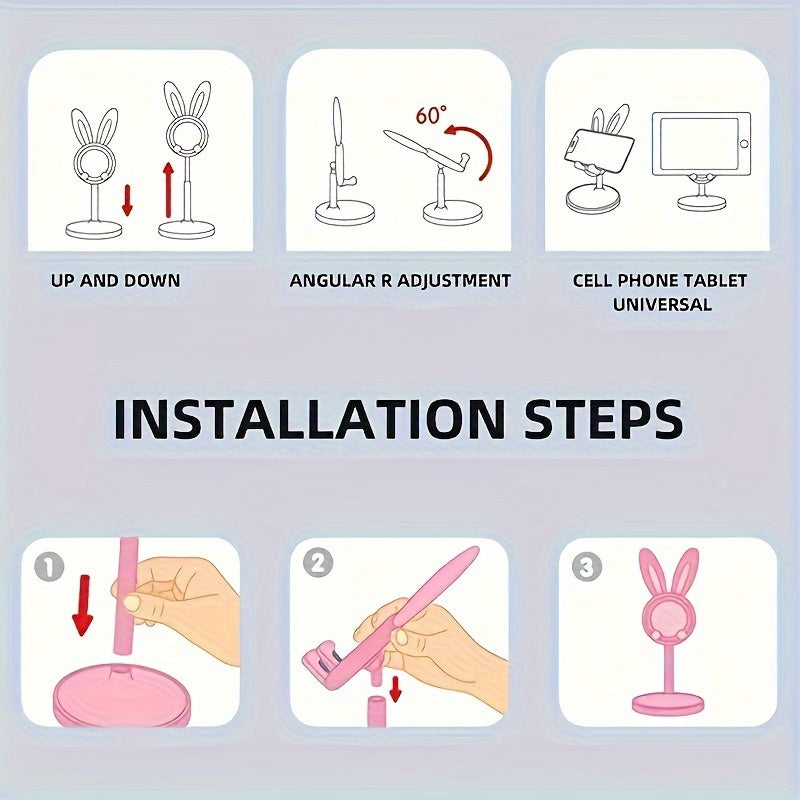 Chiroyli quyon telefon stendi, sozlanadigan balandlik, bardoshli ABS, universal stol usti uchun telefon tutgichi