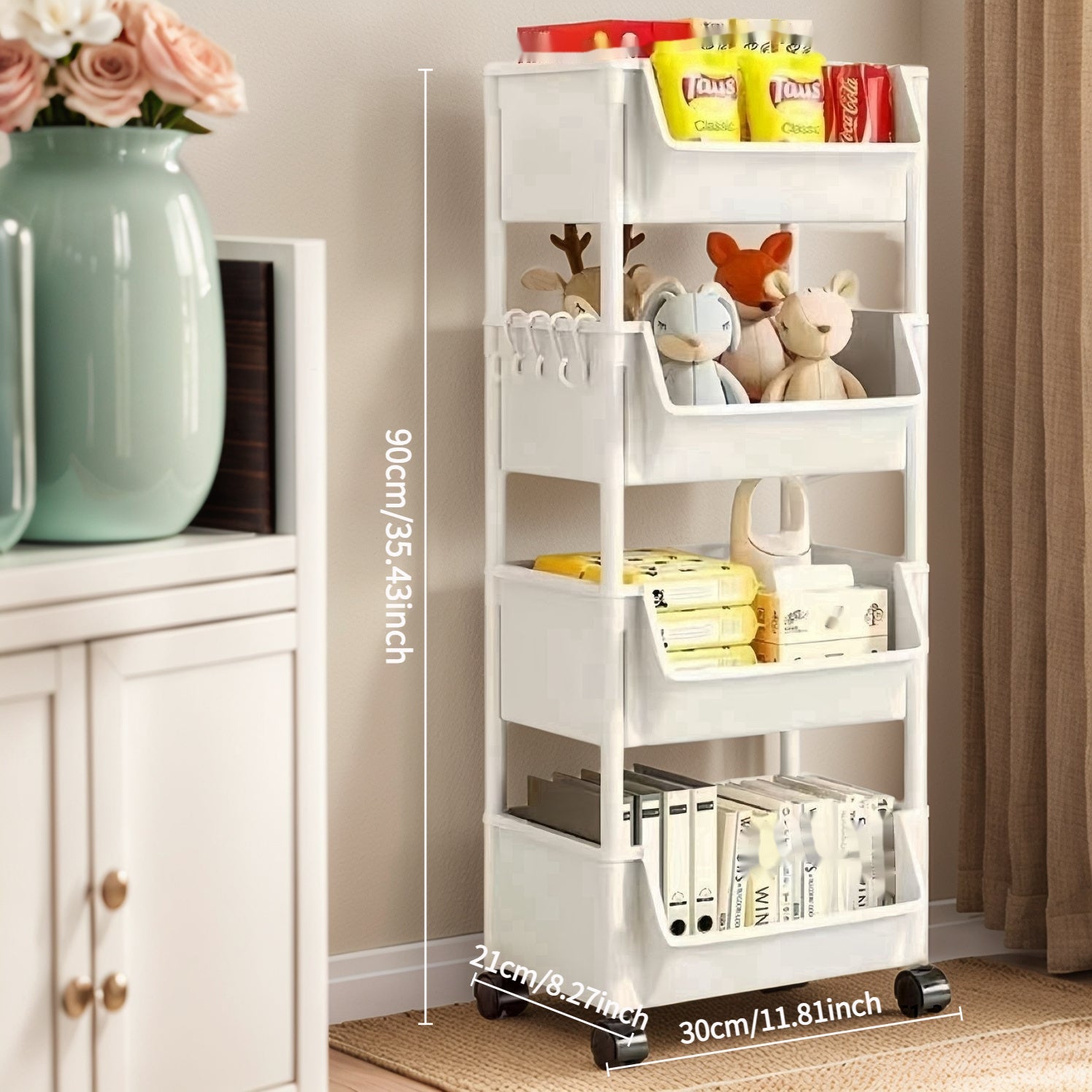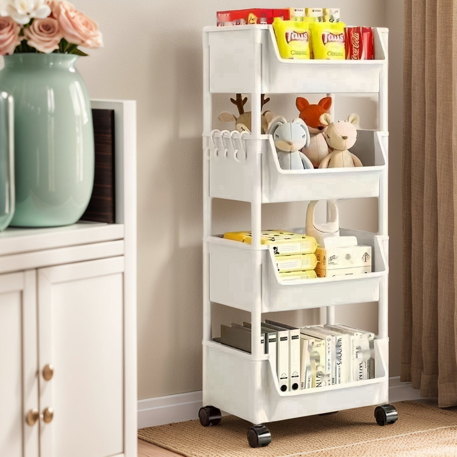 Ko'p funksiyali oq plastik tashkilotchisi - yig'ish talab qilinmaydi! Oshxona, hammom va uy saqlash uchun mukammal - kitoblar, atıştırmalıklar va uy jihozlari uchun ideal