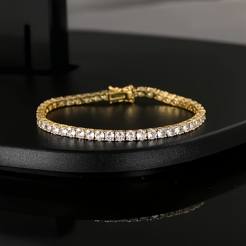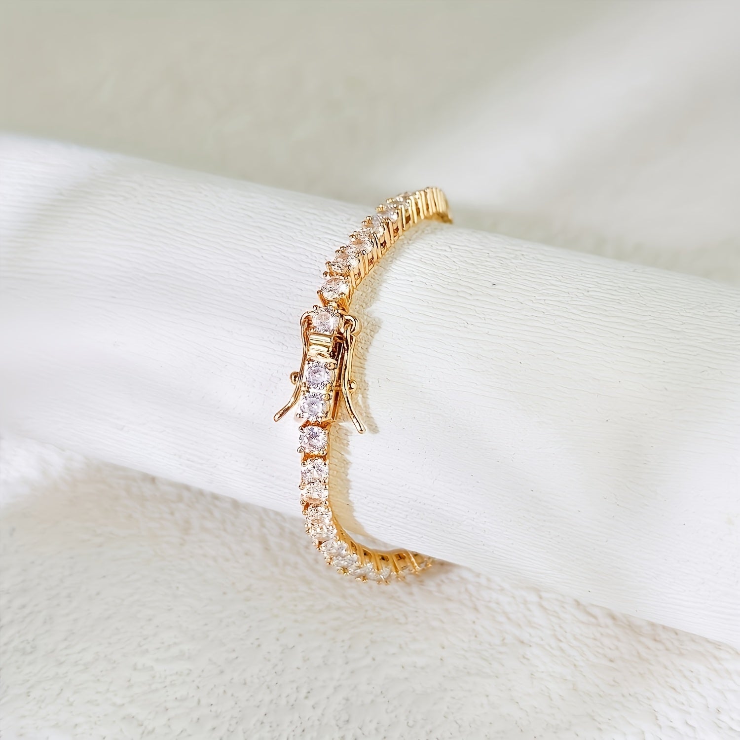Vintage 18K oltin qoplamali 925 kumush tennis bilaguzuk, sun'iy kubik zirkoniya bilan, iyul tug'ilgan to'g'ri toshi. Har kuni kiyish uchun mos bo'lgan buyum va 14 fevral uchun ideal sovg'a.