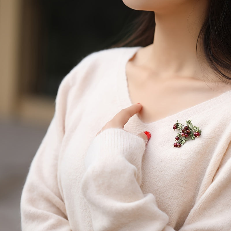 Vintage va nozik qizil kranberry brosh, rhinestone meva dizayni bilan, har qanday mavsum uchun mos. To'ylar va bayramlar uchun ideal sovg'a.