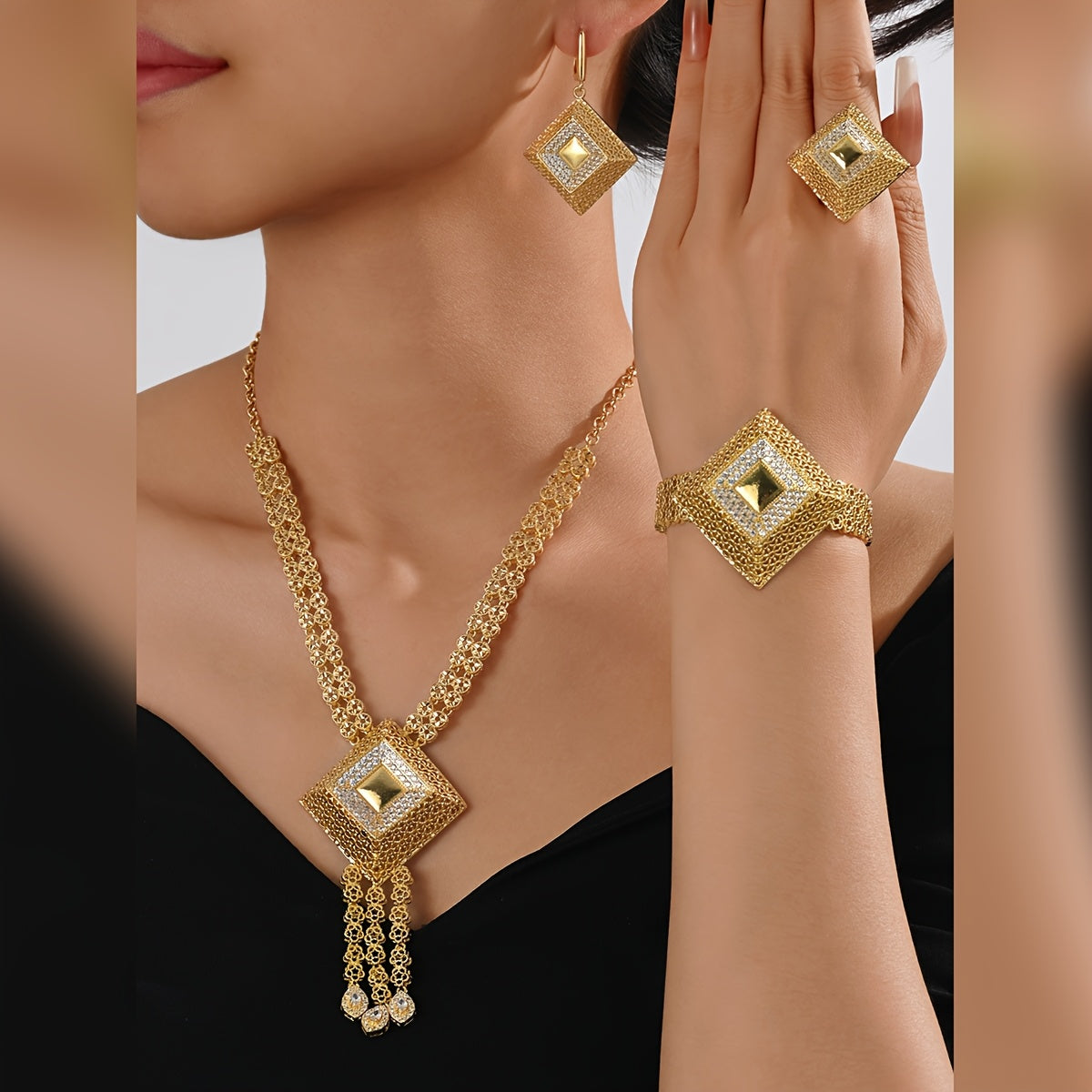 Vintage Arab uslubidagi MEIZ zargarlik to'plami, 18K oltin qoplama, sintetik zirkoniya, mis materialidan tayyorlangan, uzuk, bilaguzuk, marjon va sirg'alar kiradi, kundalik kiyish, bayramlar, Ramazon sovg'alari uchun ideal, barcha fasllar uchun mukammal.
