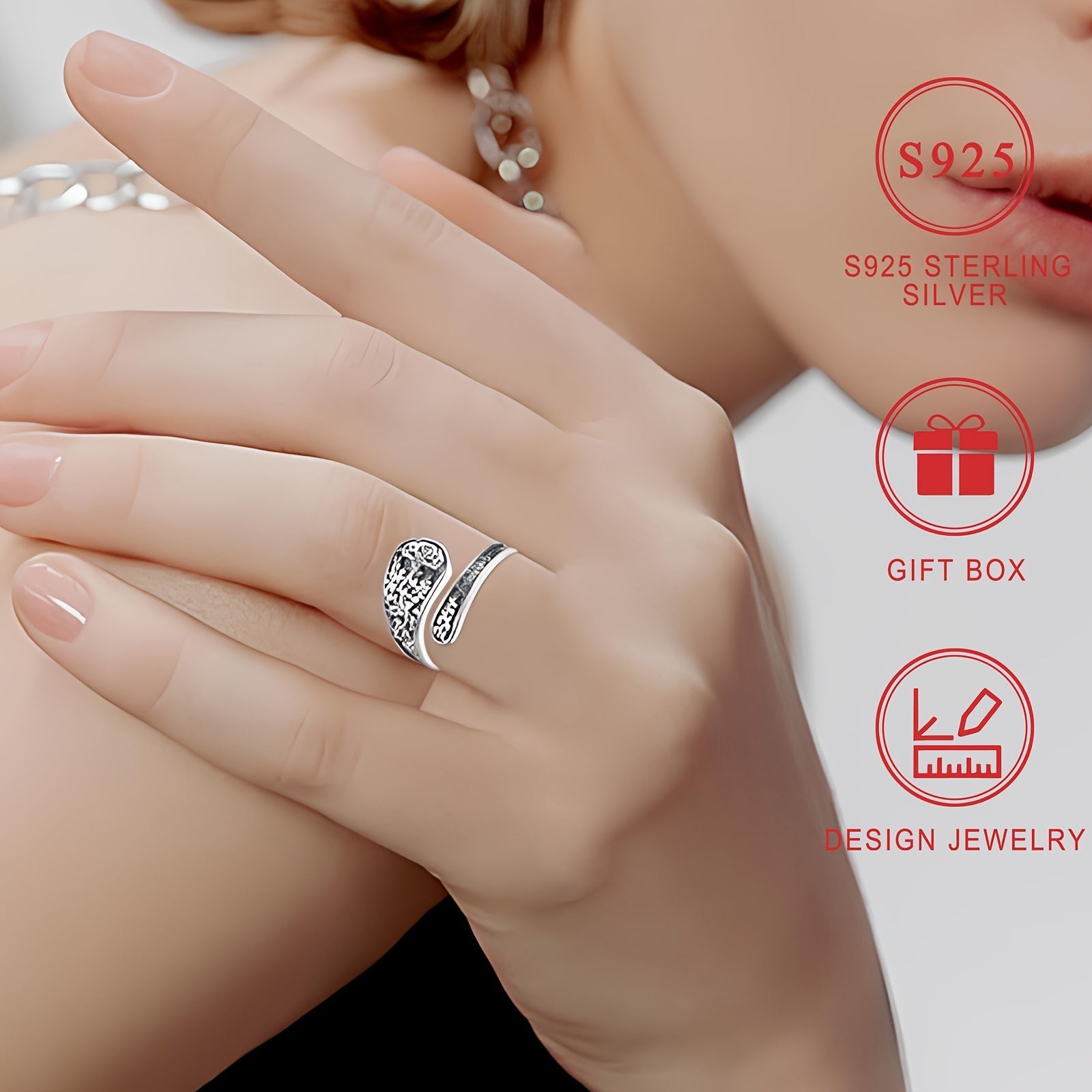 Vintage Bohemian uslubidagi 3D tekstura Hayot daraxti bantli zargarlik S925 Sterling Silver qoshiq halqasi, gippoallergen va ayollar uchun mukammal. Sovg'a qutisi bilan birga keladi, sovg'a berish uchun ideal.