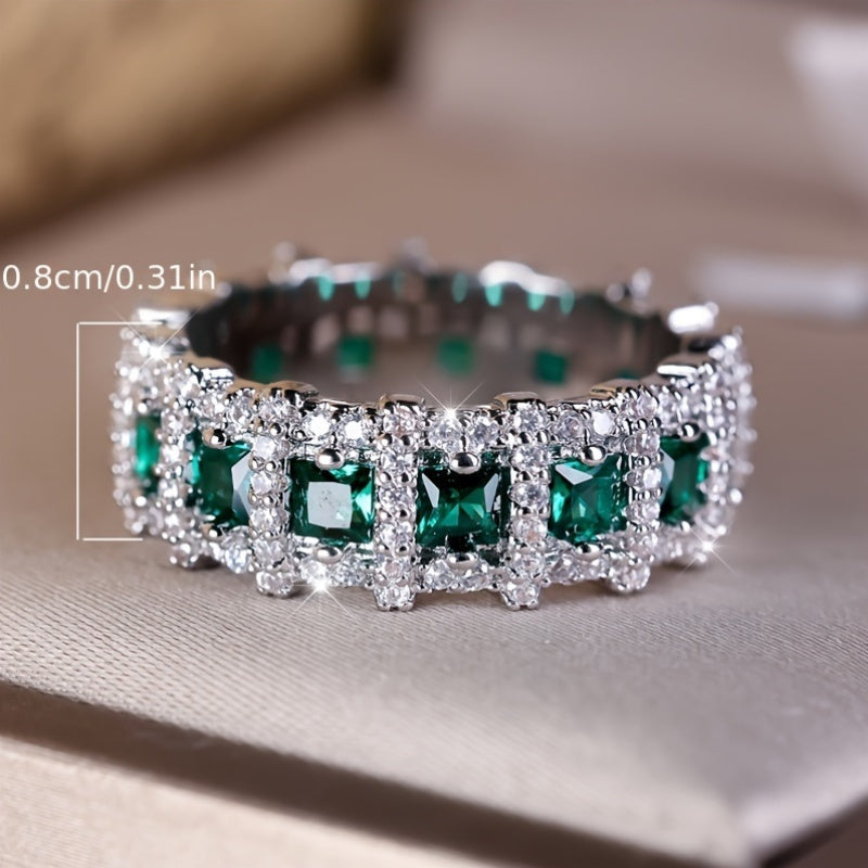 Boho uslubidagi misdan yasalgan abadiy uzuk, toʻy va takliflar uchun yashil zirkoniy toshlar bilan