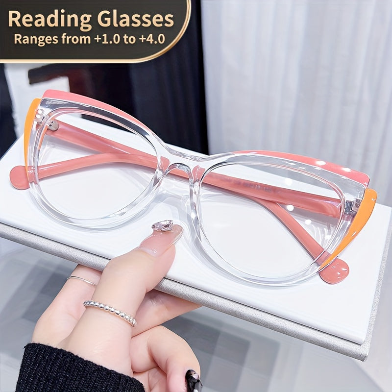 Ayollar uchun vintage mushuk ko'zli o'qish ko'zoynaklari, AC linzalari, plastik ramka, shaffof dizayn, kattalashtirish +1.0 dan +4.0 gacha, anti-tuman mato bilan birga.