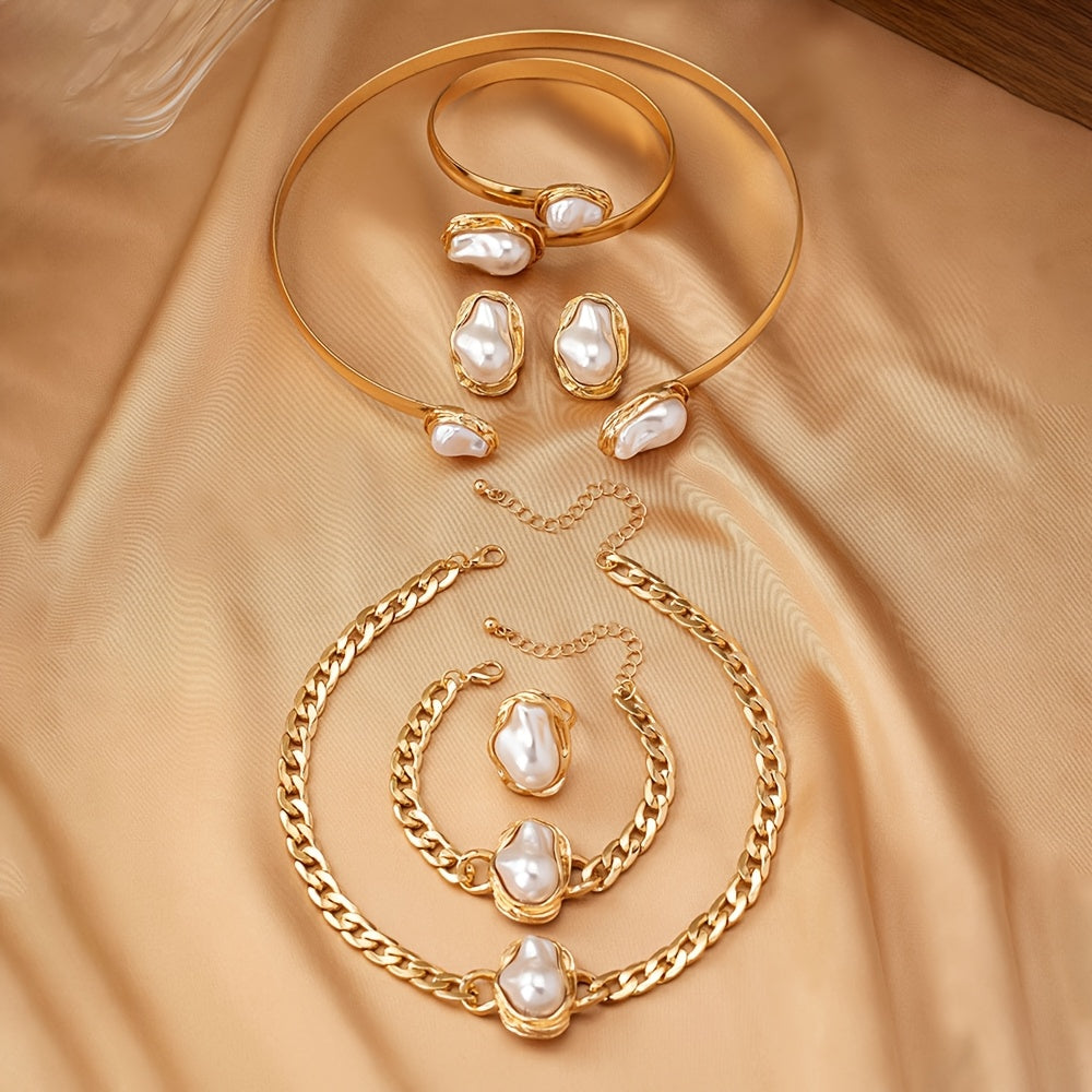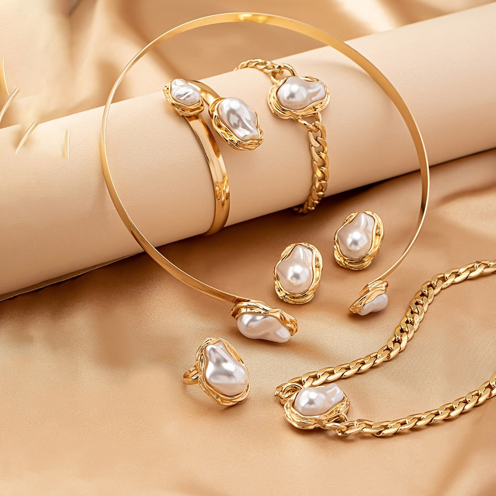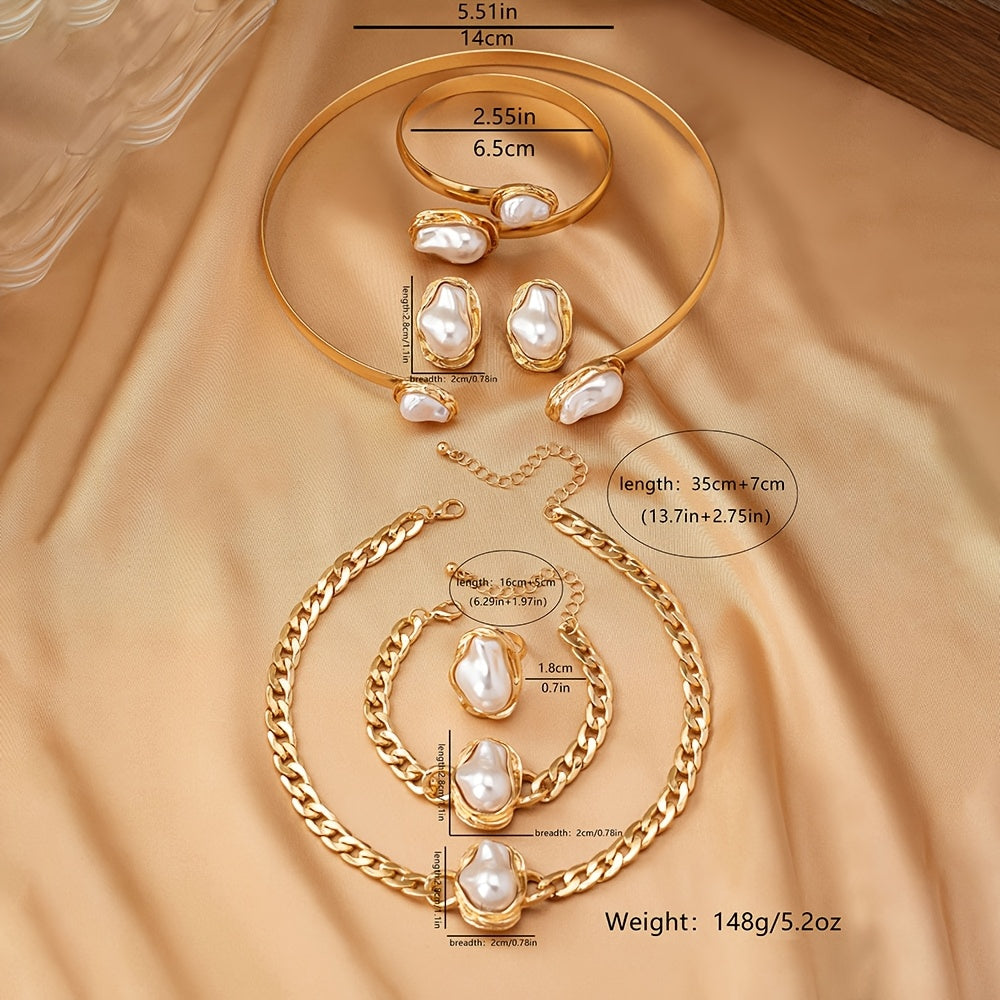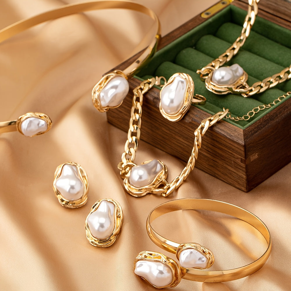 Ayollar uchun Vintage Elegant Zargarlik To'plami - Marjon, Quloq uzuklari, Bilaguzuk, Soat to'plami bilan birga, Sun'iy marjon inlay, Temir asos, Nikel qoplamali po'latdan tayyorlangan - Sovg'alar, Bayramlar va Har kuni kiyish uchun mukammal - Jami 6 dona