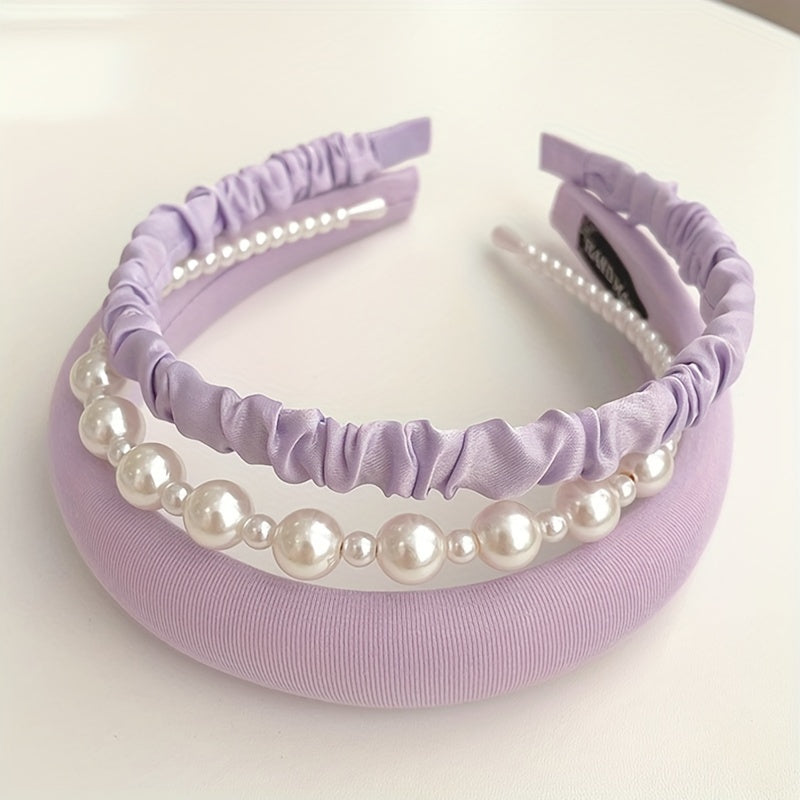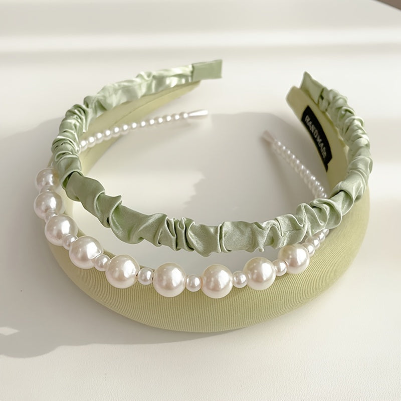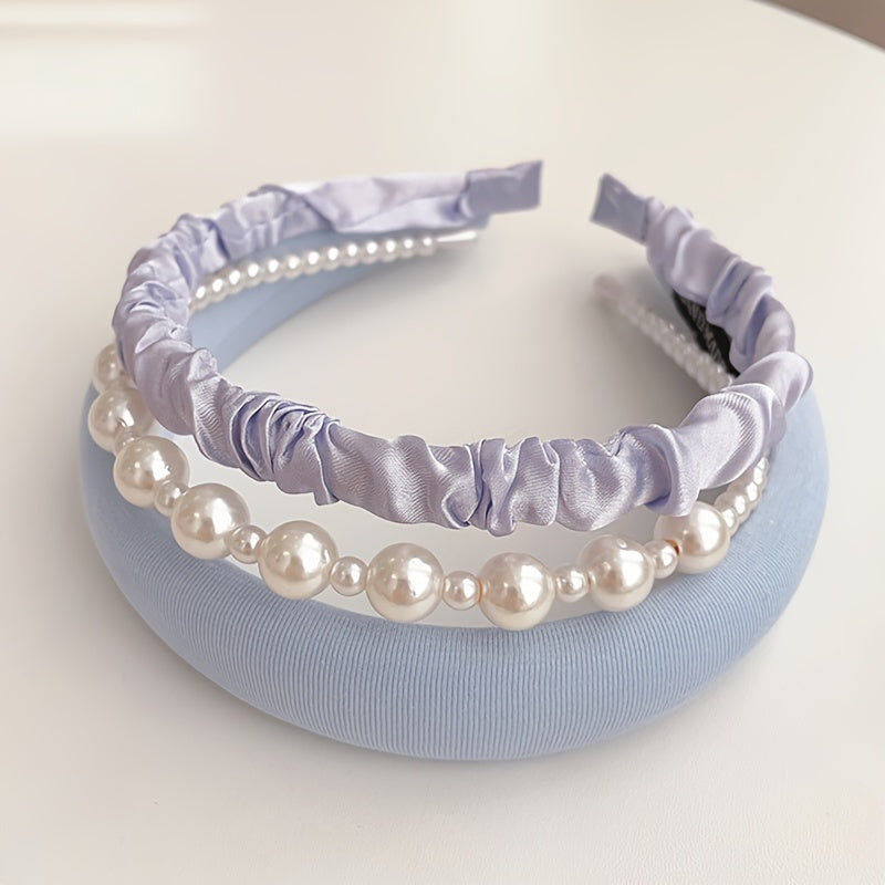 Vintage mato bosh bantlari marvarid aksentlari bilan - kostyum va soch aksessuarlari uchun 3 dona to'plam