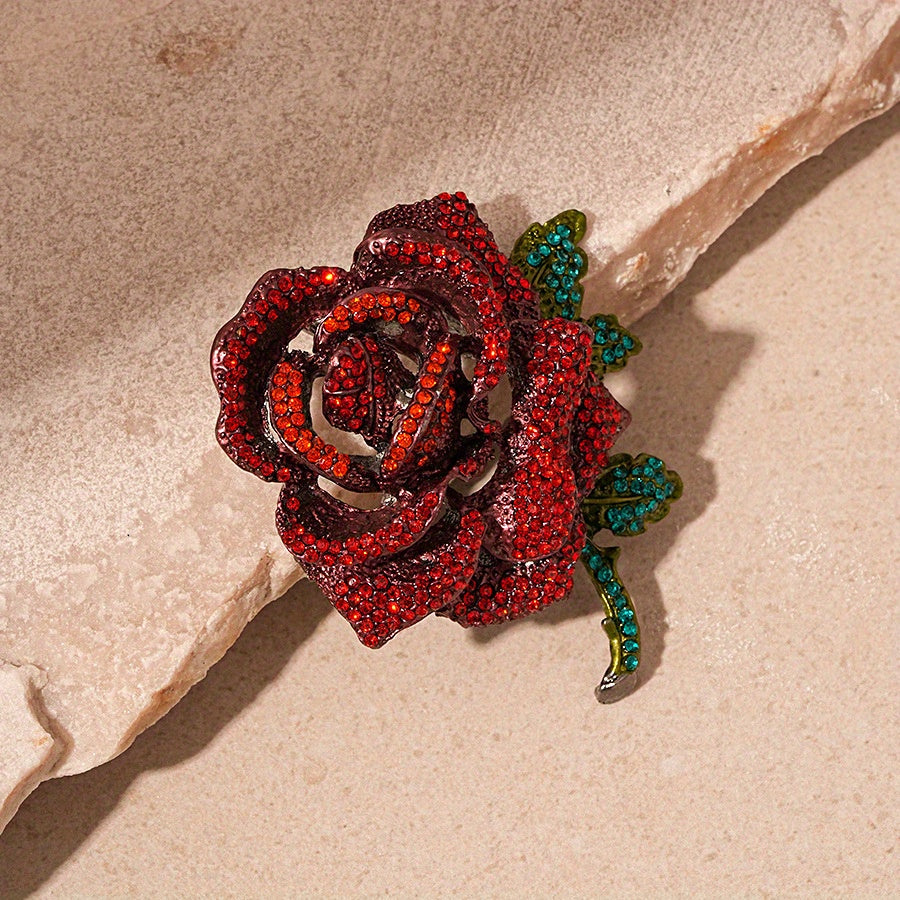 Vintage gullar brosh, rhinestone bilan bezatilgan hashamatli atirgul dizayni, to'ylar va har kuni kiyish uchun mukammal zamonaviy zargarlik aksessuari