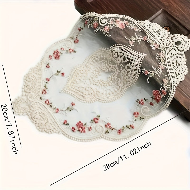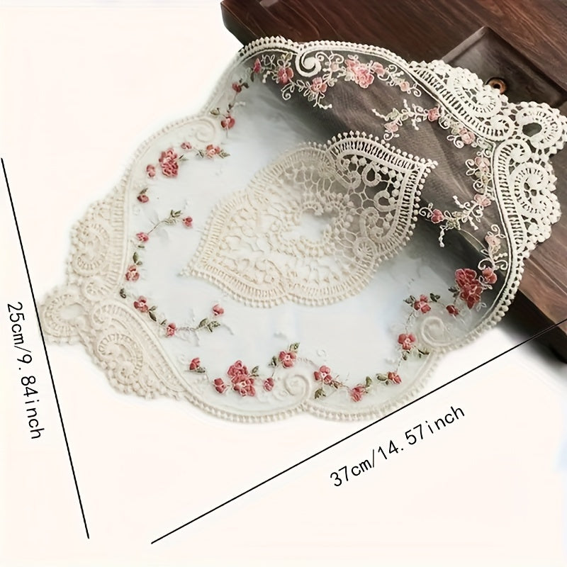 Polyesterdan yasalgan vintage fransuz dantelli tikilgan stol qoplamasi, stolni bezatish yoki fotosuratlar uchun prop sifatida ideal.