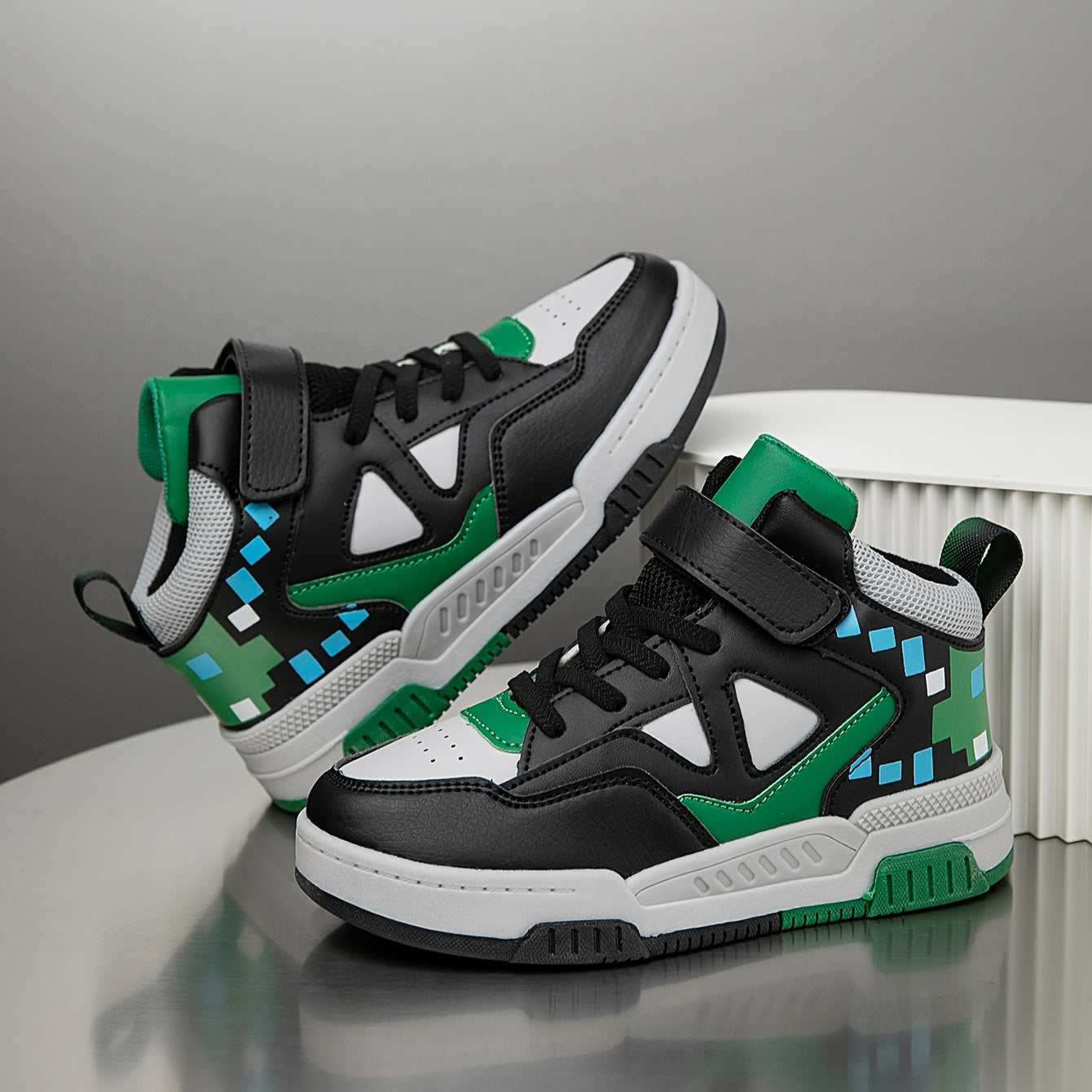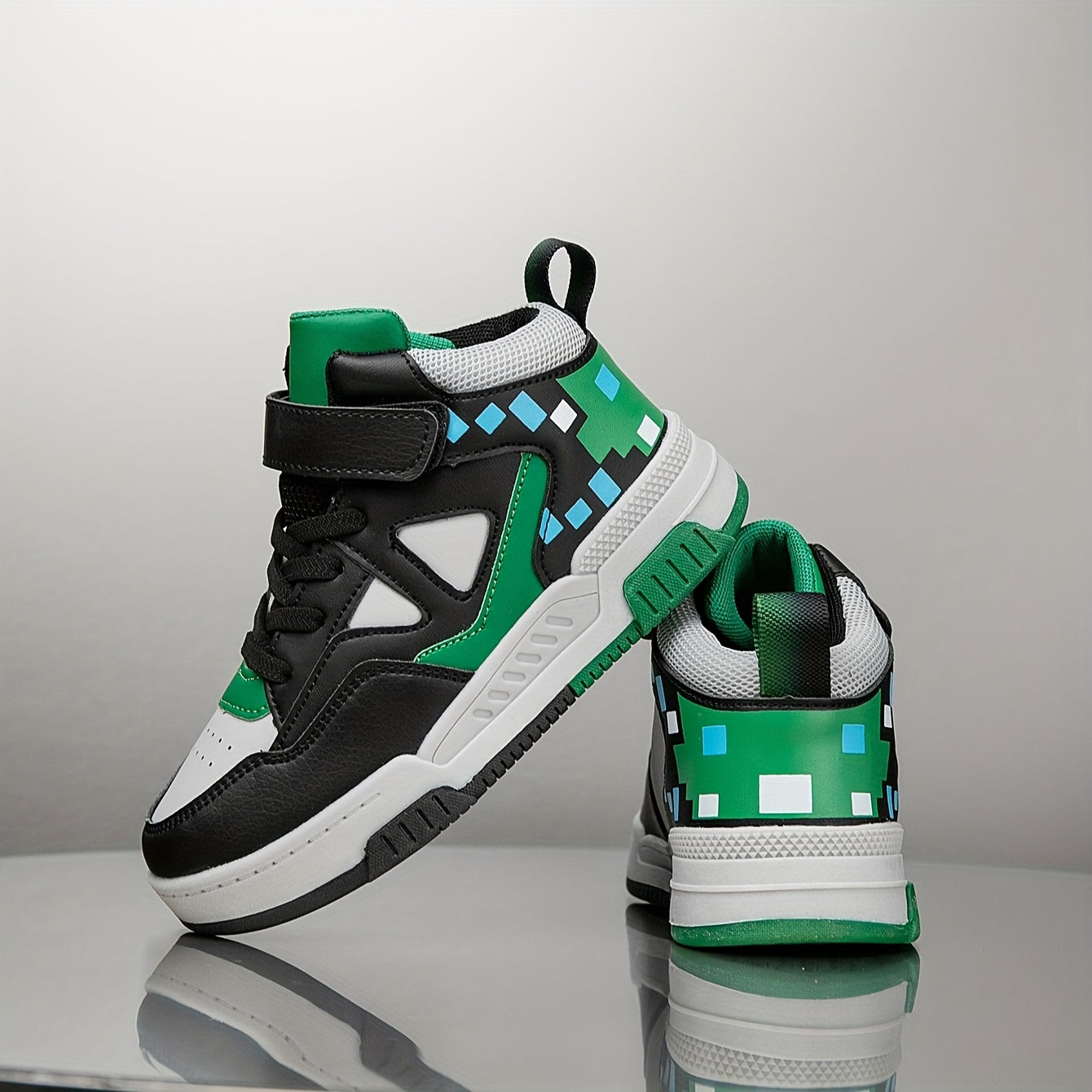 Vintage geometrik yuqori to'plamli krossovkalar, yopishqoq yopish bilan - nafas oladigan, sirpanmaydigan, o'g'il va qizlar uchun yugurish va tasodifiy kiyim uchun ideal.