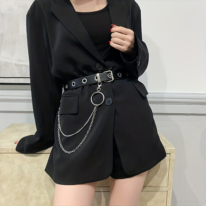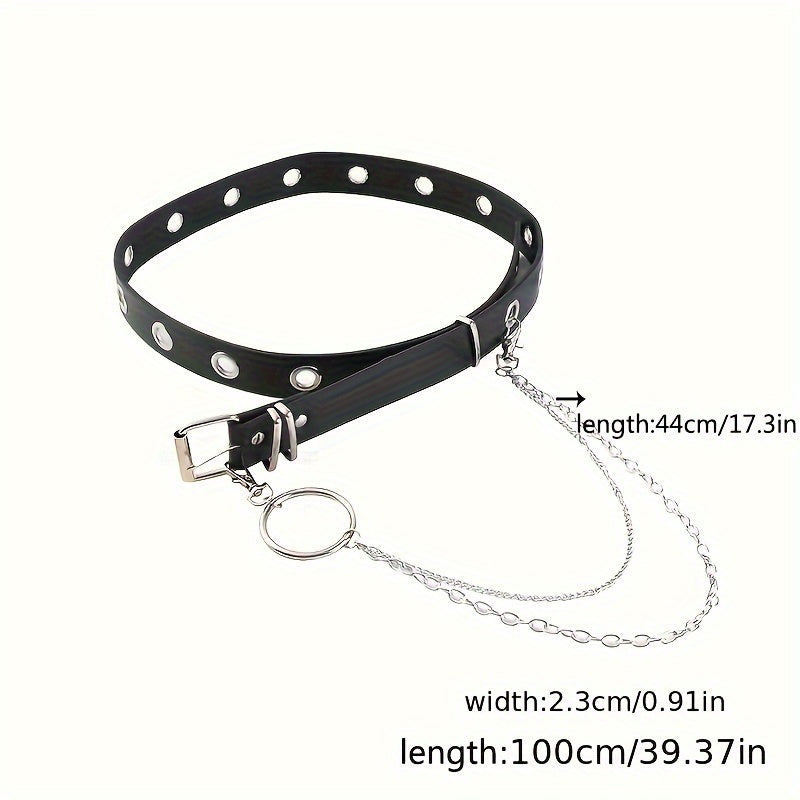 Gotik ayollar kiyimlari uchun kamar, ajraladigan zanjirli tassel bilan, rivet bilan ta'minlangan qora PU punk uslubidagi belbog'