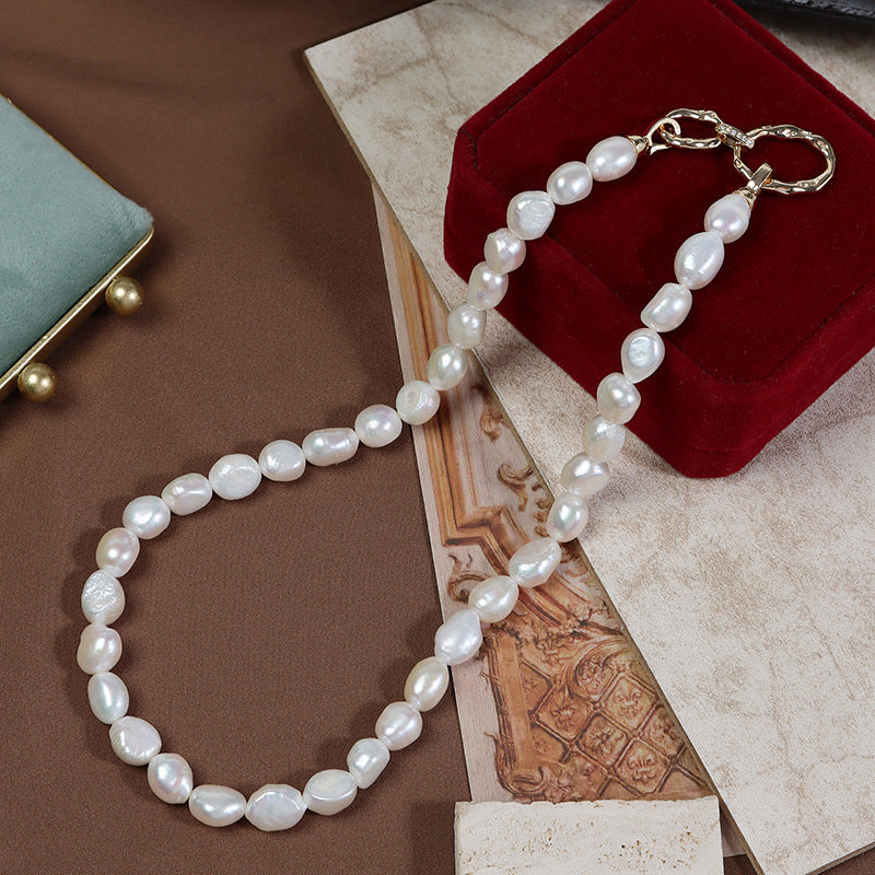 Vintage uslubidagi chiroyli kalta zanjir, Barokko qizilquloq dizayni - Nafis shirin suv marvaridi bilaguzuk, Sterling kumush qopqoq, Bahor mavsumi uchun mukammal, Ayollar uchun ideal