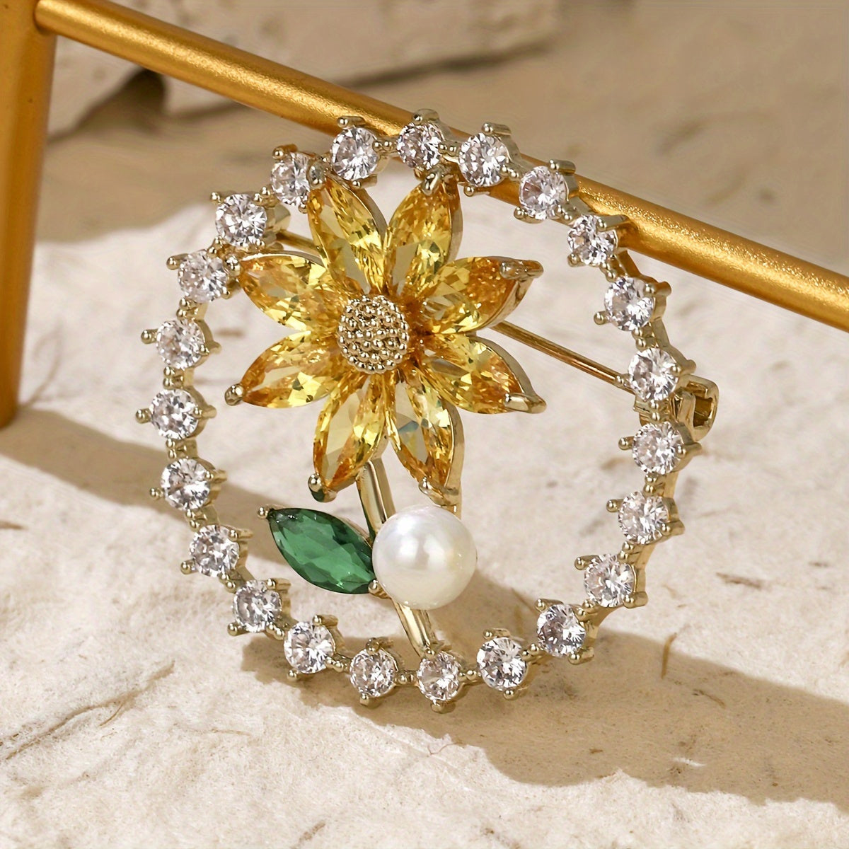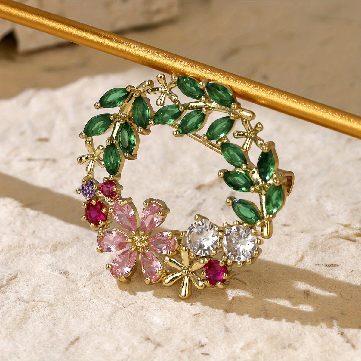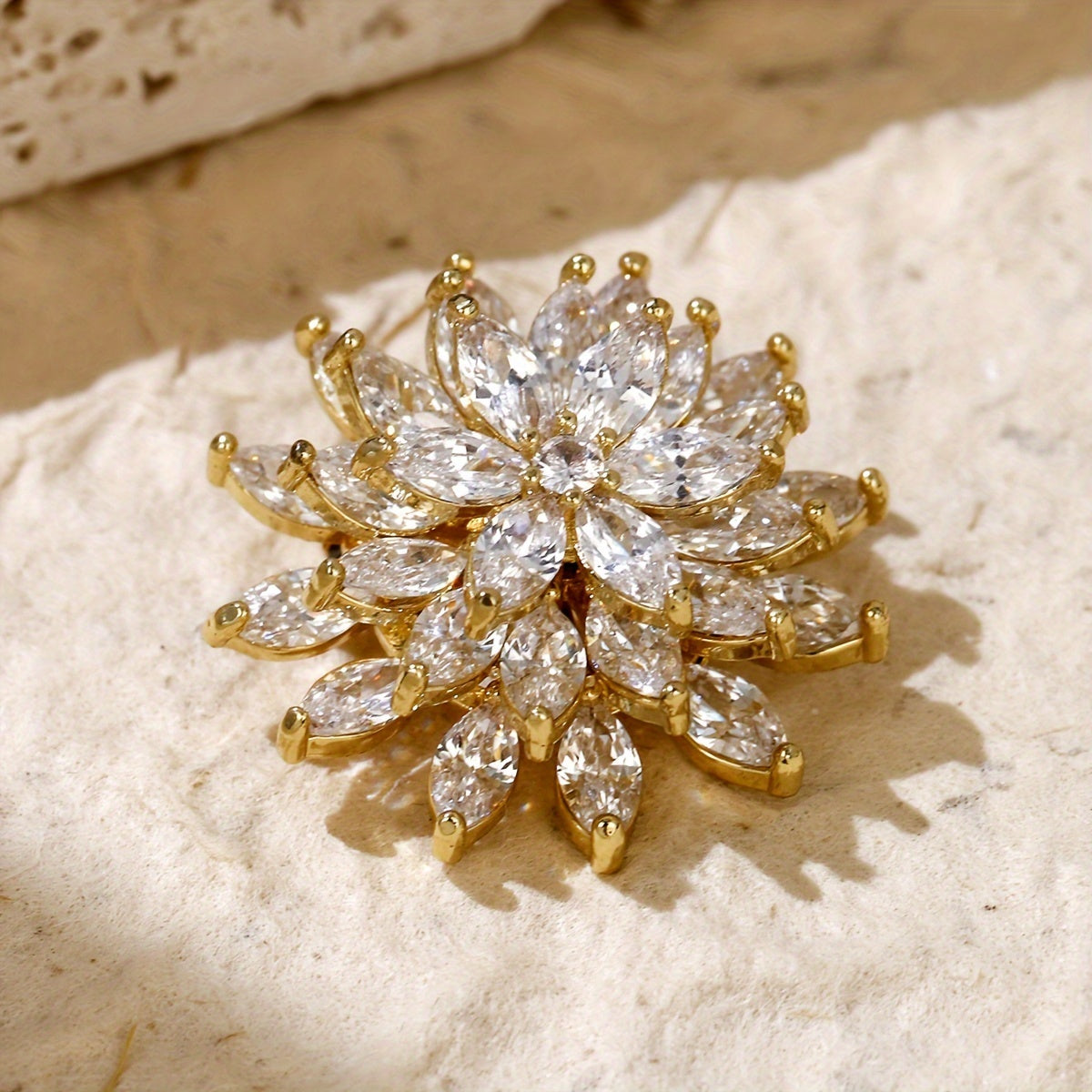 Vintage uslubidagi gullar bilan bezatilgan yeng pin, porloq zirkoniy bilan, ayollar uchun sharf va kiyimlarga hashamat va nafislik qo'shish uchun mukammal.