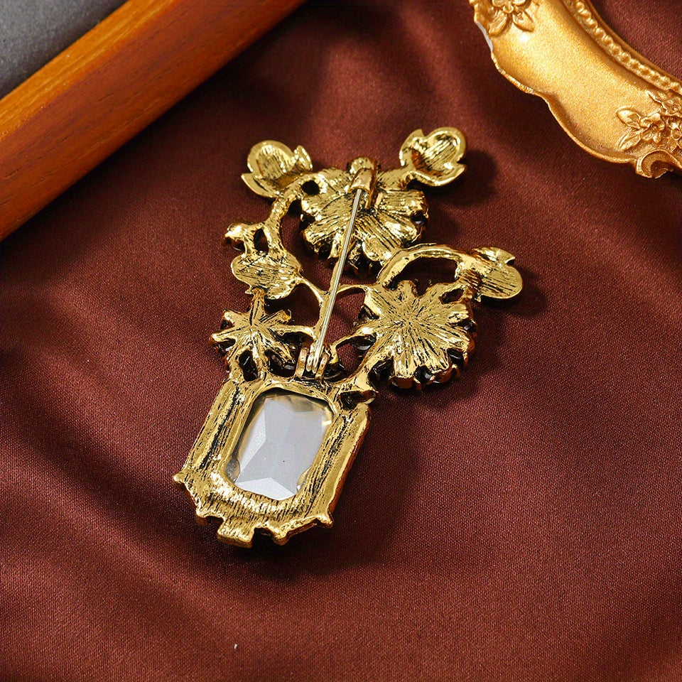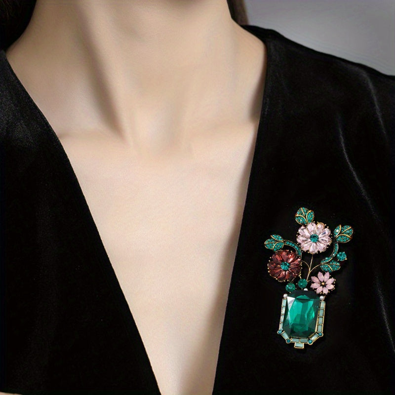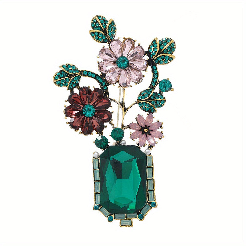Vintage uslubidagi fransuz yashil kristal vaza brosh, noyob niş dizayni, ayollar uchun hashamatli moda aksessuari.
