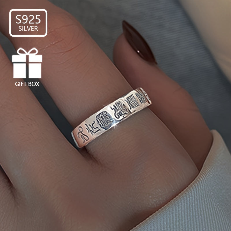 Uniseks Sterling kumush etnik uslubdagi tinchlik, omadli rux va uzuk kundalik kiyim va bayramlar uchun