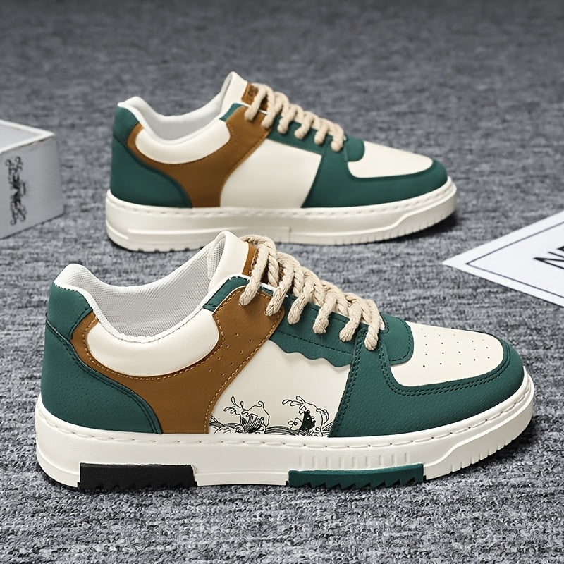 Vintage preppy erkaklar krossovkalari qalin, sirpanmaydigan taglik va multfilm naqsh dizayni bilan, ochiq havoda faoliyatlar uchun mukammal.