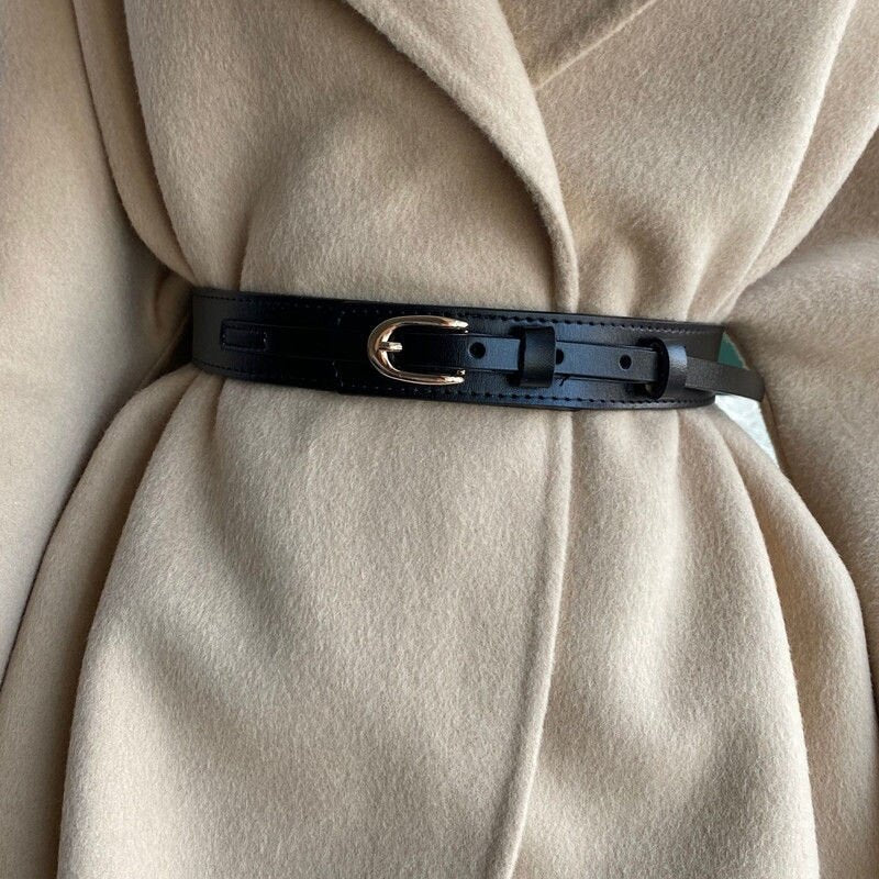 Ayollar va qizlar uchun vintage PU belbog'li klassik pin tokchali sozlanadigan kiyingan ko'ylak palto aksessuari