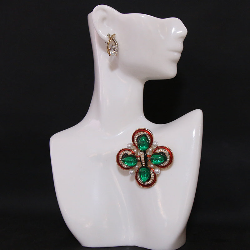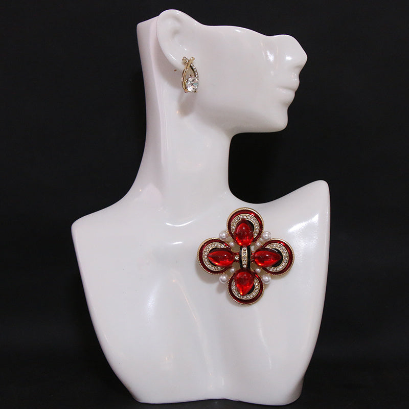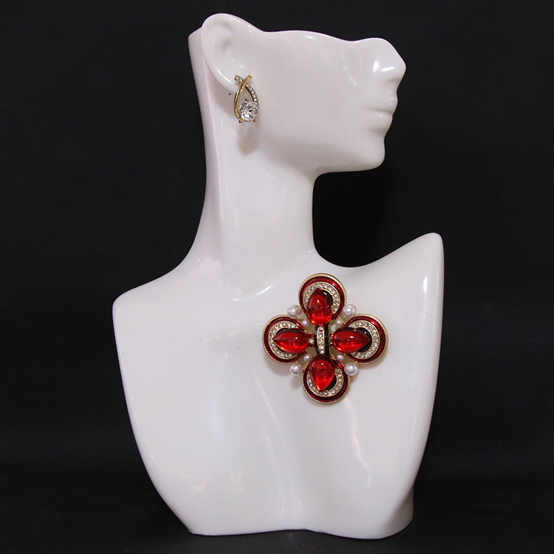 "Vintage Rhinestone Brooch Pin G'arbiy Xoch Dizayni, Shisha Marvaridlar va Noaniq Shakllar bilan bezatilgan, Hashamatli va Nafis Saroydan ilhomlangan Ko'rinish uchun"