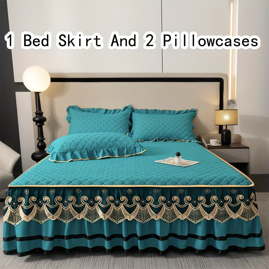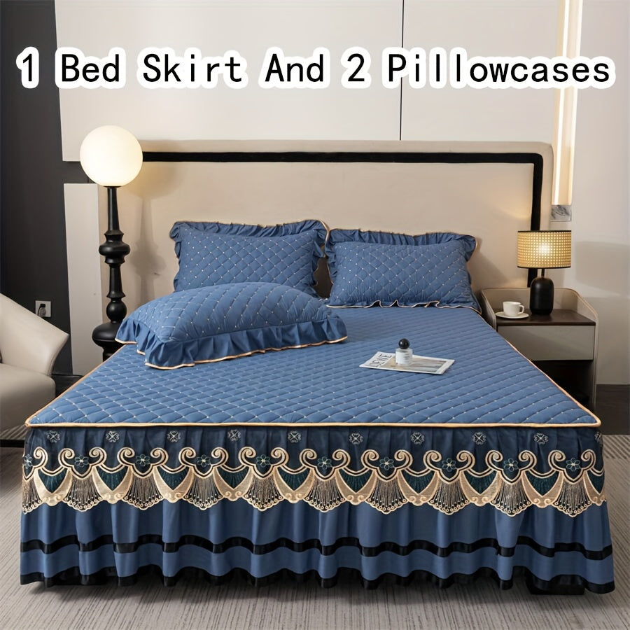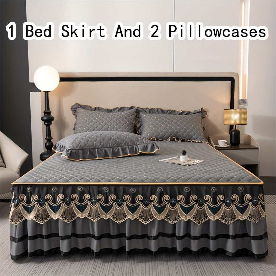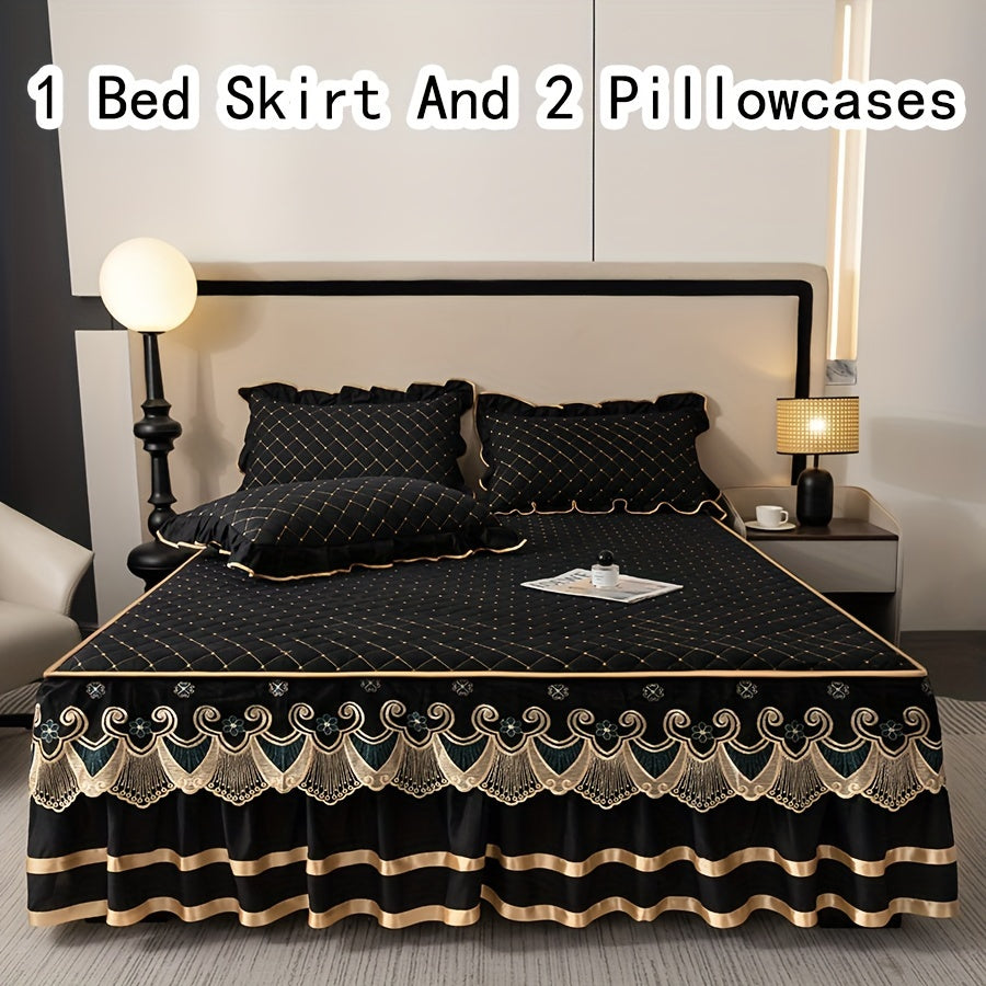 Vintage uslubidagi qora yostiq qopqog'i va yostiq qoplari to'plami - 3 dona, tikilgan dantel trim bilan, qalinlashtirilgan to'shak, mashinada yuvish mumkin, uy va mehmonxona foydalanishi uchun barcha mavsumlar uchun qulay.