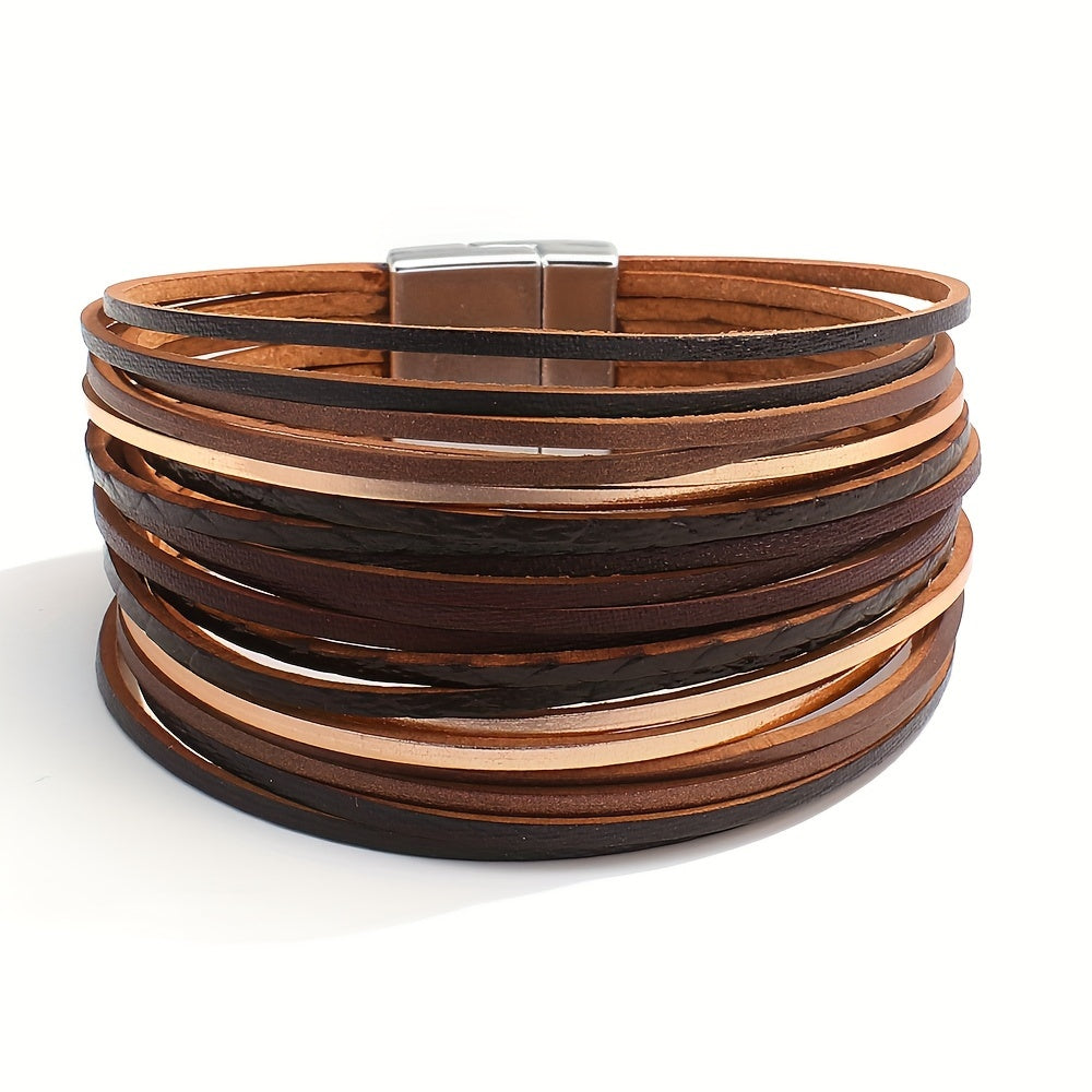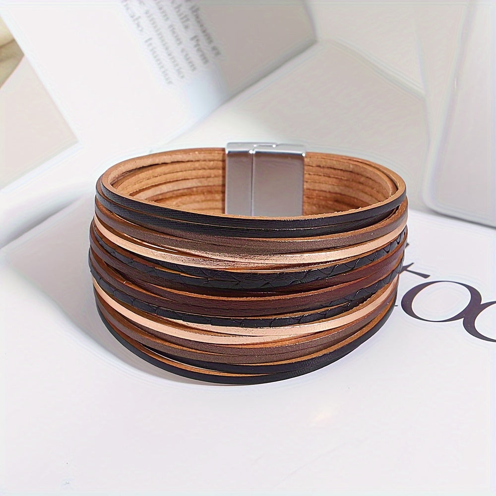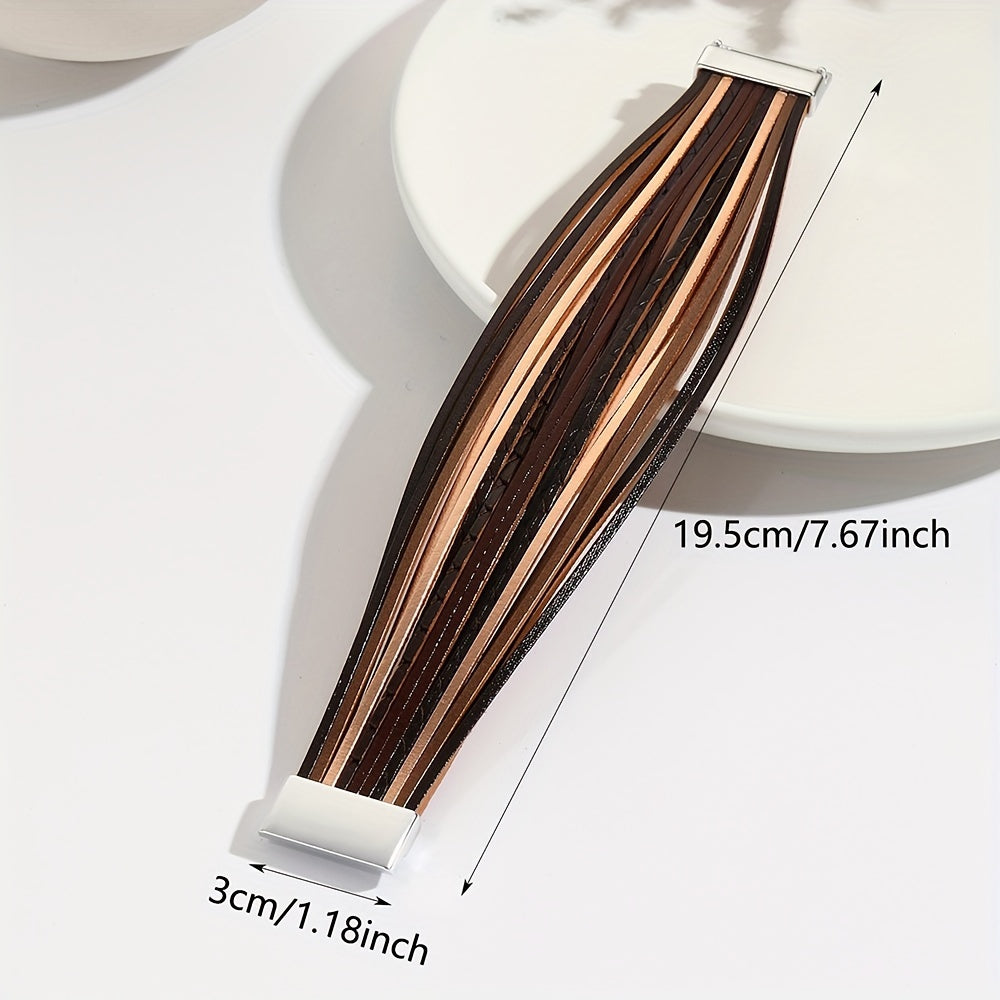 Vintage uslubidagi Bohemian ko'p qatlamli PU charmli bilaguzuk, jigarrang va qora iplar bilan, do'stlik juftliklari uchun mo'ljallangan. Mukammal moslik uchun sozlanadigan qopqoqga ega.