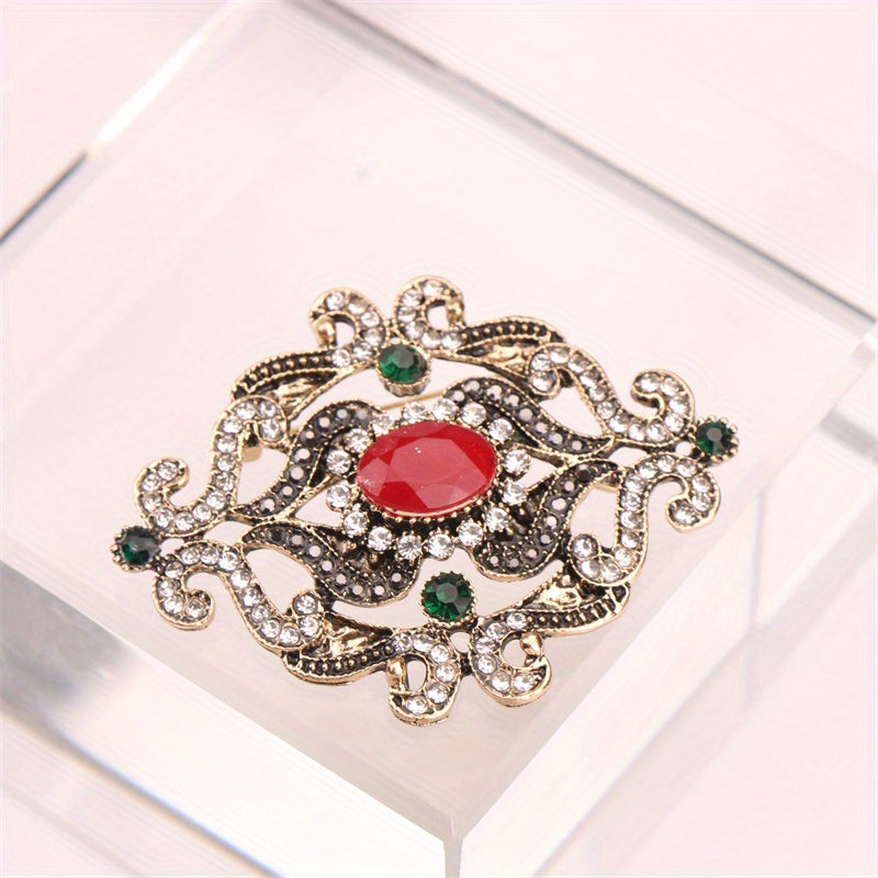 Vintage uslubidagi kristal brosh pin, rhinestone aksentlari va notekis gullar dizayni bilan - kiyimlar va sviterlar uchun mukammal