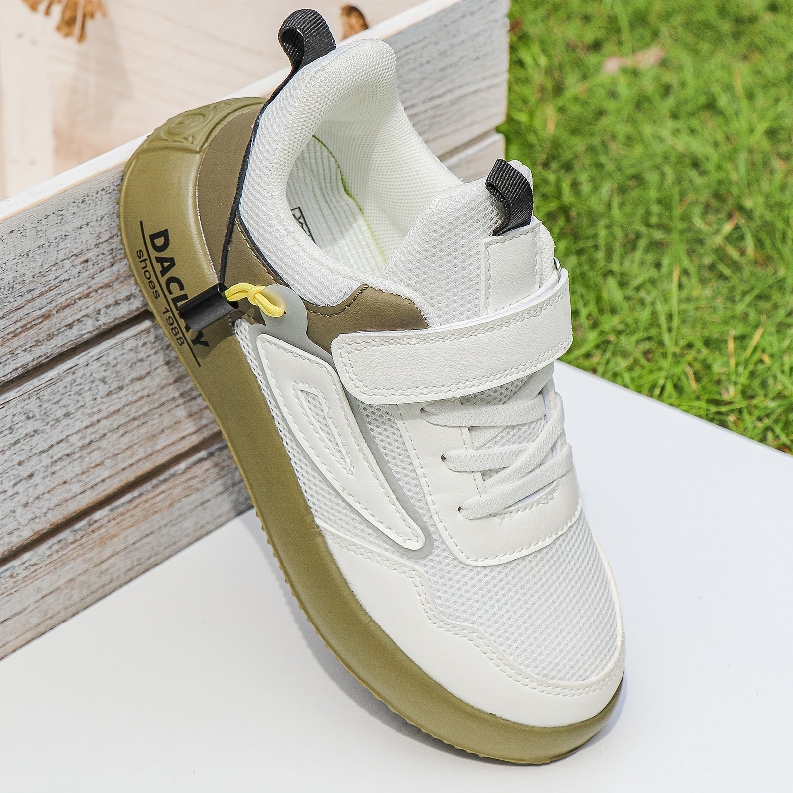 Vintage uslubidagi bolalar uchun sport basketbol poyabzallari, sozlanadigan tasmalari, engil dizayni, PU yuqori qismi, mato ichki qismi, EVA tagligi va dumaloq barmoq - tasodifiy yugurish uchun mukammal.