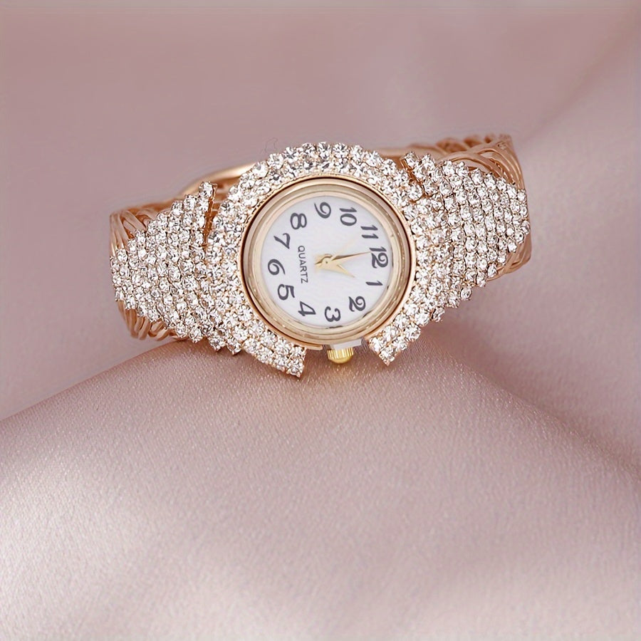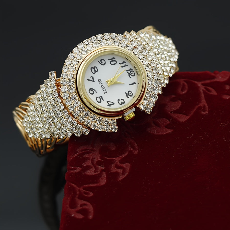 Vintage uslubidagi hashamatli bangle bilaguzuk, porloq zirkoniya bilan - sozlanadigan va soat ilhomlantirgan, tasodifiy kiyim va sovg'a berish uchun ideal