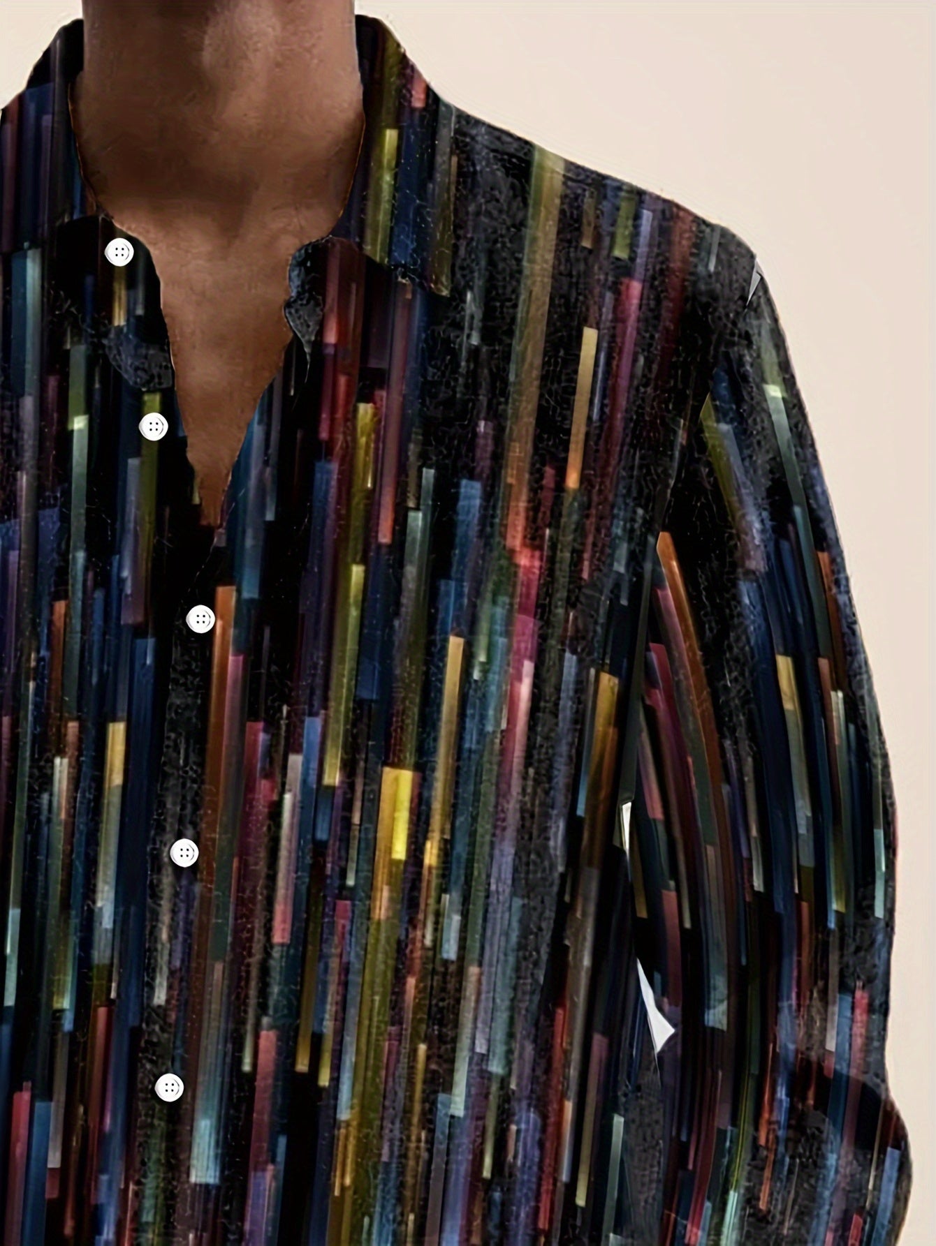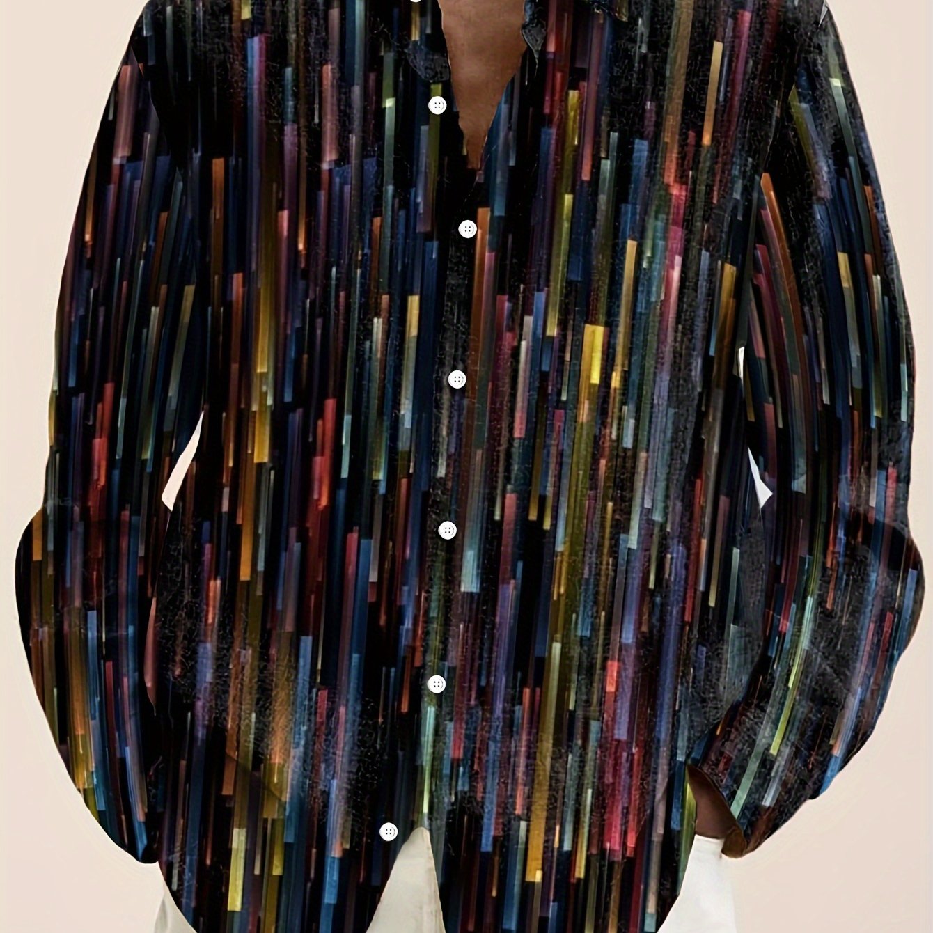 Vintage uslubidagi erkaklar uchun katta o'lchamdagi uzun qo'lqopli tugmachali ko'ylak, to'qilgan polyesterda, kamon rangli gradient bosma, oddiy kesim, kuz kolleksiyasi.