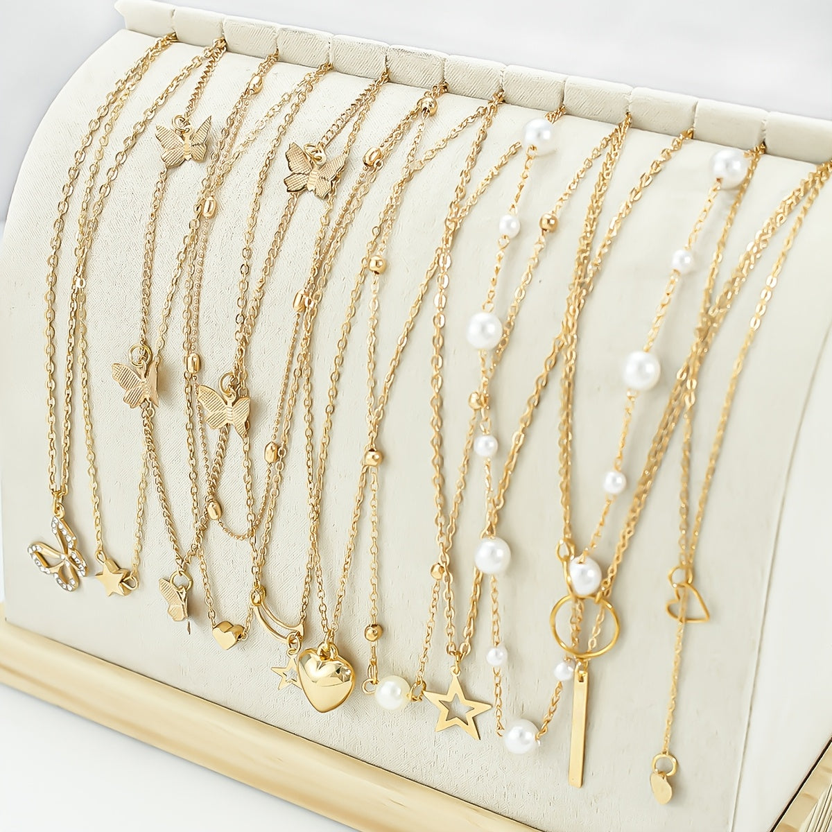 Vintage uslubidagi marjon to'plami 11 dona bo'lib, temir pendantlar yulduzlar, kapalaklar, yuraklar va oycha shaklida. Ayollar uchun nafis kundalik kiyim va ko'p qirrali bayram aksessuaridir.