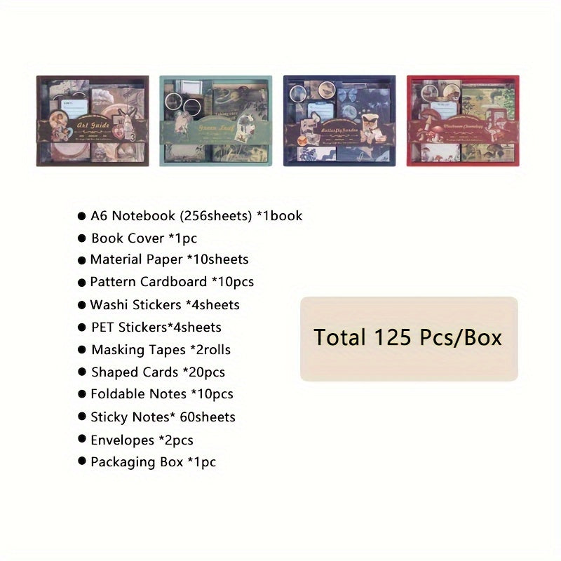 Vintage uslubidagi skrabbook stikerlari qog'oz to'plami - 125 dona