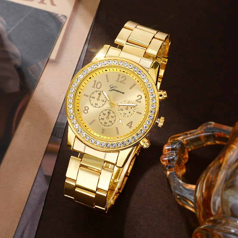 Qadimiy uslubdagi soat, tosh bezaklari va zanglamas po'latdan yasalgan tasma - 14 fevral, Pasxa yoki Eid Al-Adha uchun mukammal sovg'a.