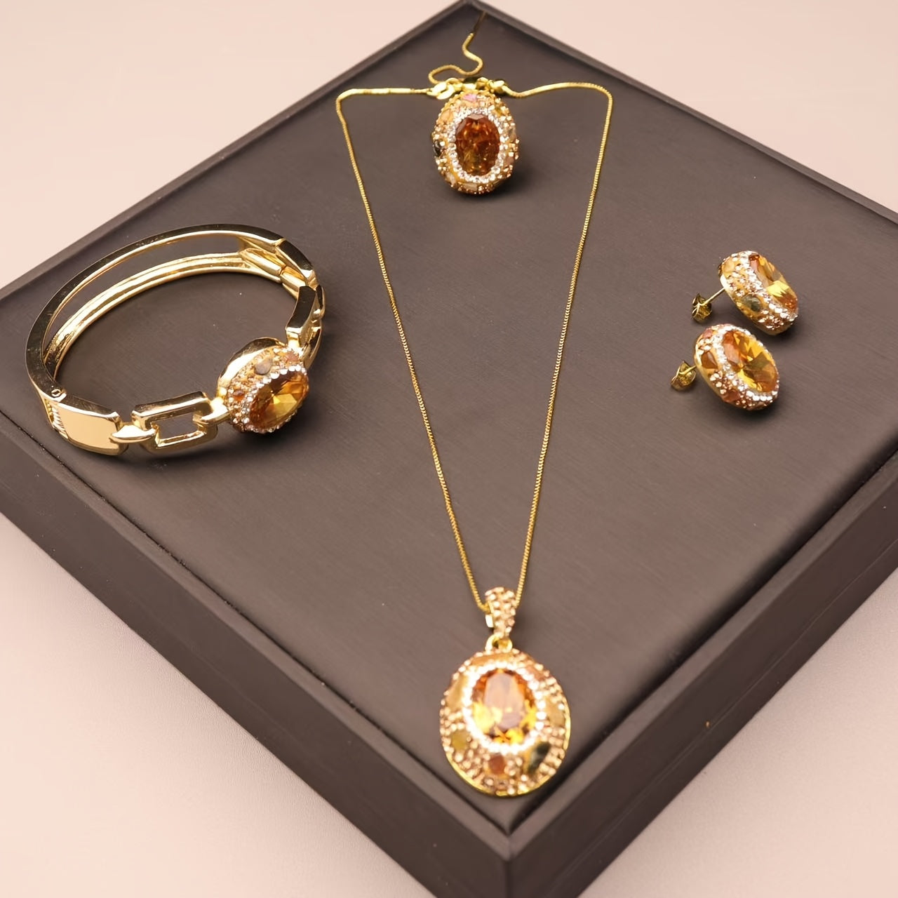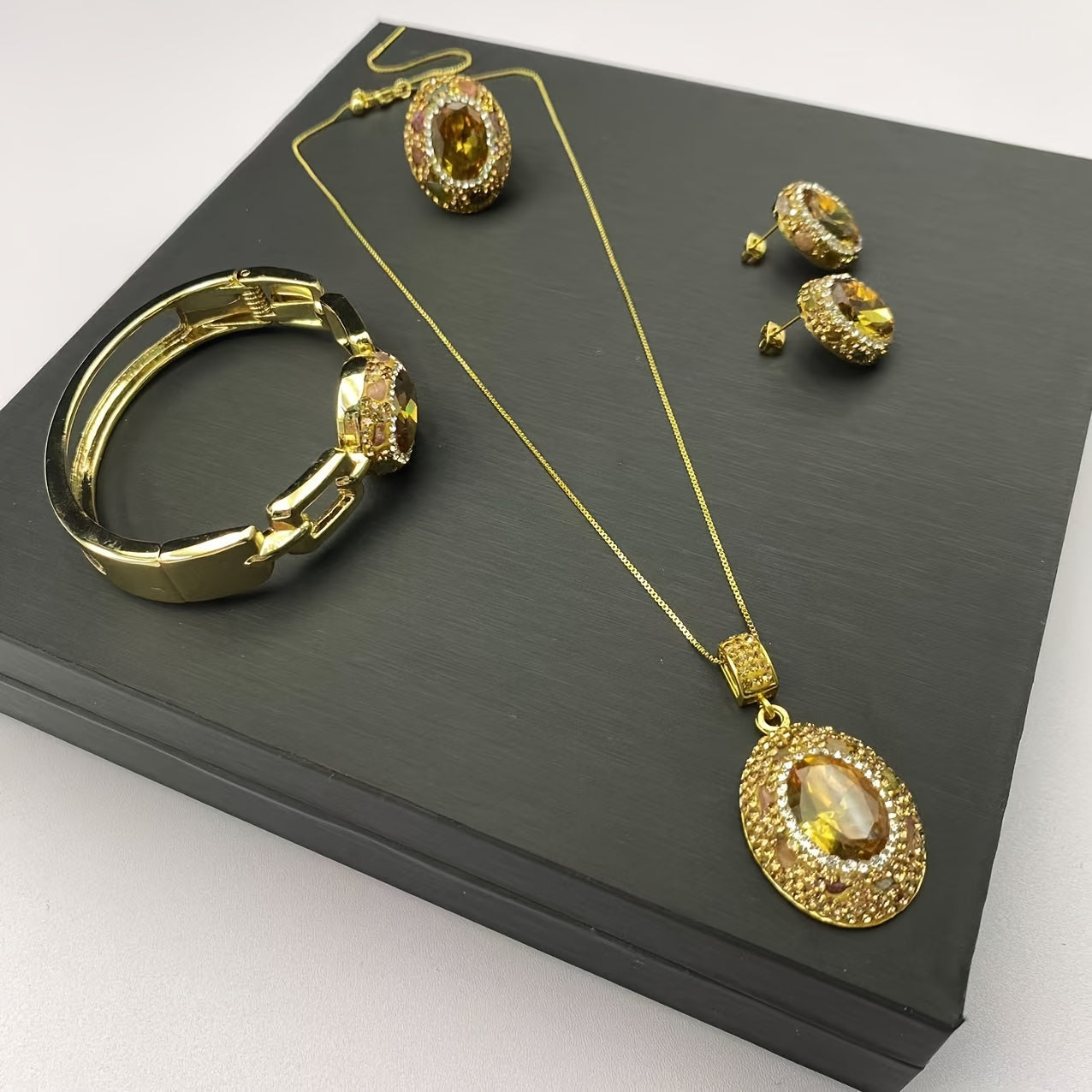 Ayollar uchun vintage tribal uslubidagi zargarlik to'plami, 18K qotishma bilan qoplangan mis, tabiiy toshli taqinchoq, sirg'alar, bilaguzuk va uzuk