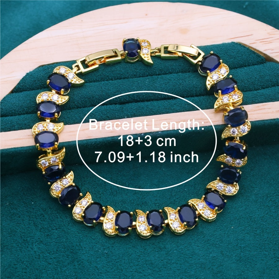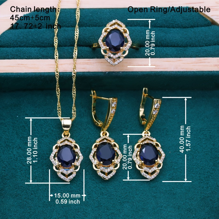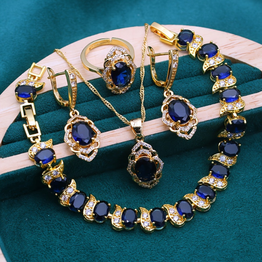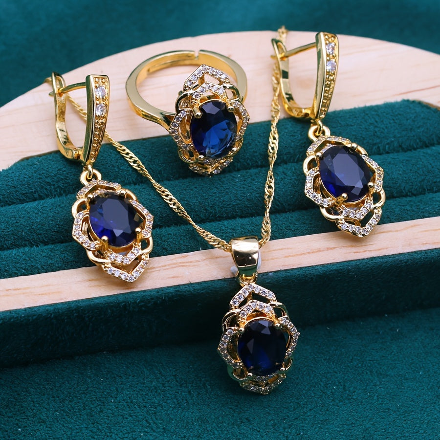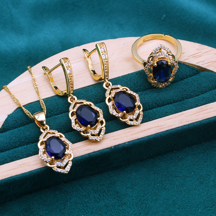 18K oltin qoplamali ko‘k toshli zargarlik to‘plami, ayollar uchun taqinchoq, marjon, uzuk, taqish