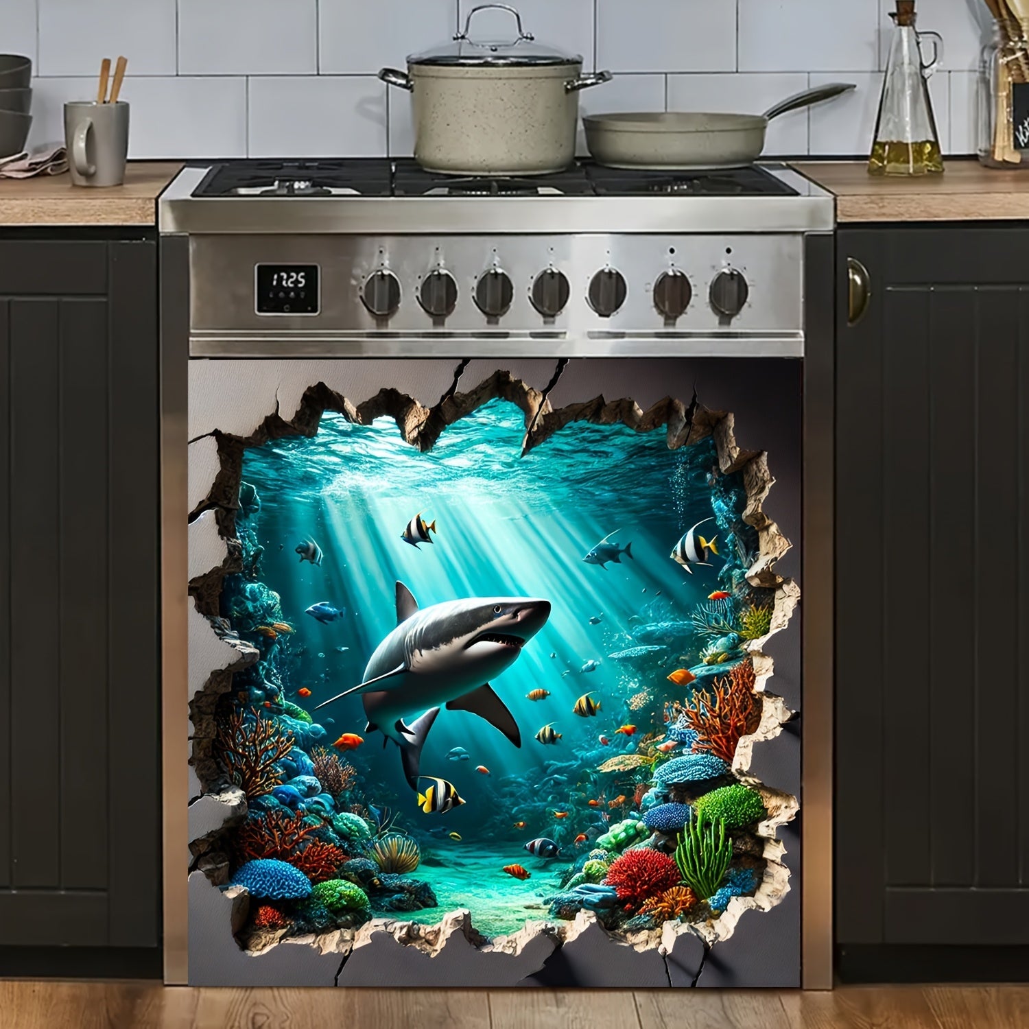 Vinil Magnit Idish Yuvish Qopqog'i - Suv Ostida Shark Sarguzashtini Taqdim Etadi - Suvga Chidamli, Isiga Chidamli, Tozalash Oson. Quvvat Talab Qilmaydi. Portret Yo'nalishi. Oshxonada Muzlatgich Eshigi Dekoratsiyasi Uchun To'rtburchakli Stiker.
