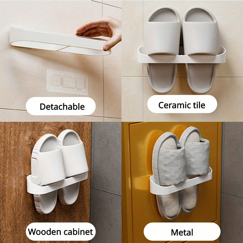 Devorga o'rnatiladigan hammom poyabzal tokchasi, pichoqsiz o'rnatish bilan, uy hammomida poyabzallarni qulay saqlash uchun. Hammom poyabzallarini va boshqa narsalarni tartibga solish va saqlash uchun ideal.
