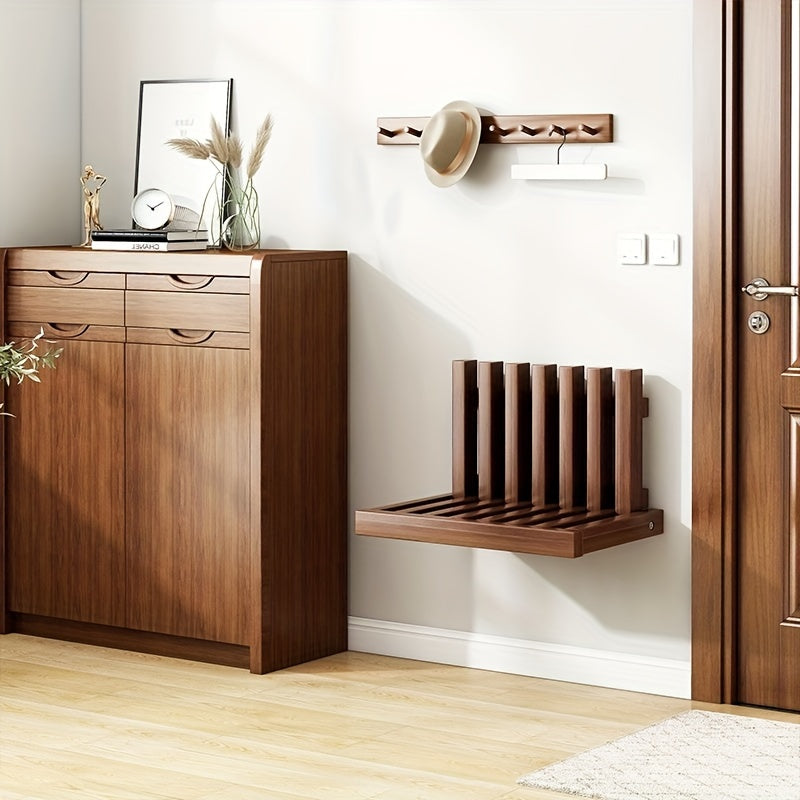 Devorga o'rnatiladigan egiluvchan poyabzal almashtirish stuli, vintage eman qoplamasi bilan, qo'ltiqsiz yog'och saqlash stuli, ochiladigan qopqoq bilan. Kirish joyi uchun mustahkam yog'och osma stul.