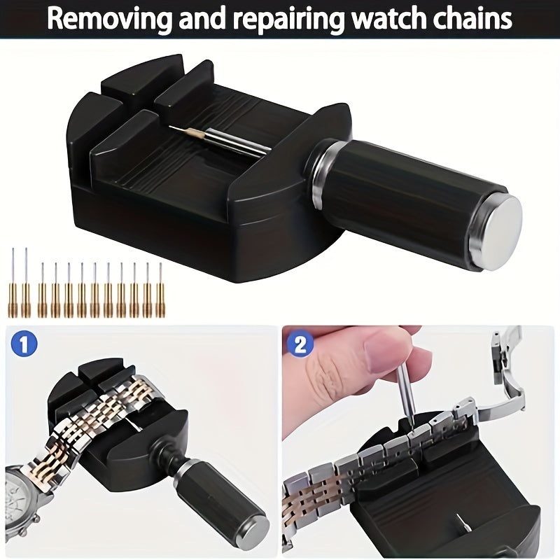 Soat bog'ichlarini va bilakuzuklarni sozlash uchun 16 dona soat linklarini olib tashlash vositalari to'plami, soat pin itaruvchi, bolg'a va soat pinlari bilan birga.