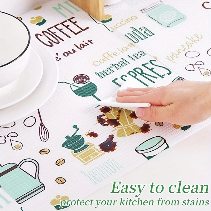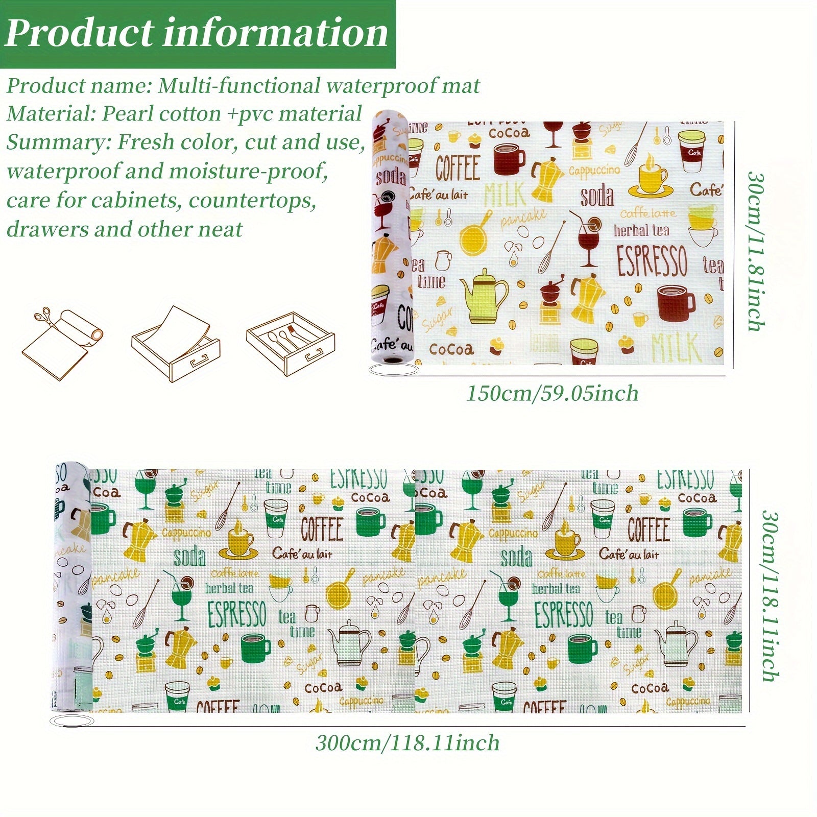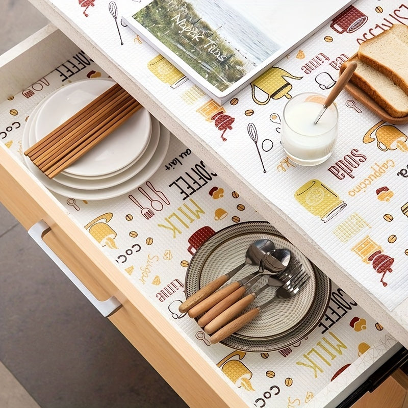 Kabinetlar, stol yuzalari va shkaflar uchun suv o'tkazmaydigan choyshab mato. Poyabzal shkaflari uchun maxsus qog'oz, namlikka chidamli va changga qarshi. Oshxona, muzlatgich va shkaf uchun sirpanmaydigan javon qoplami. Xonani bezash uchun uy jihozlari.