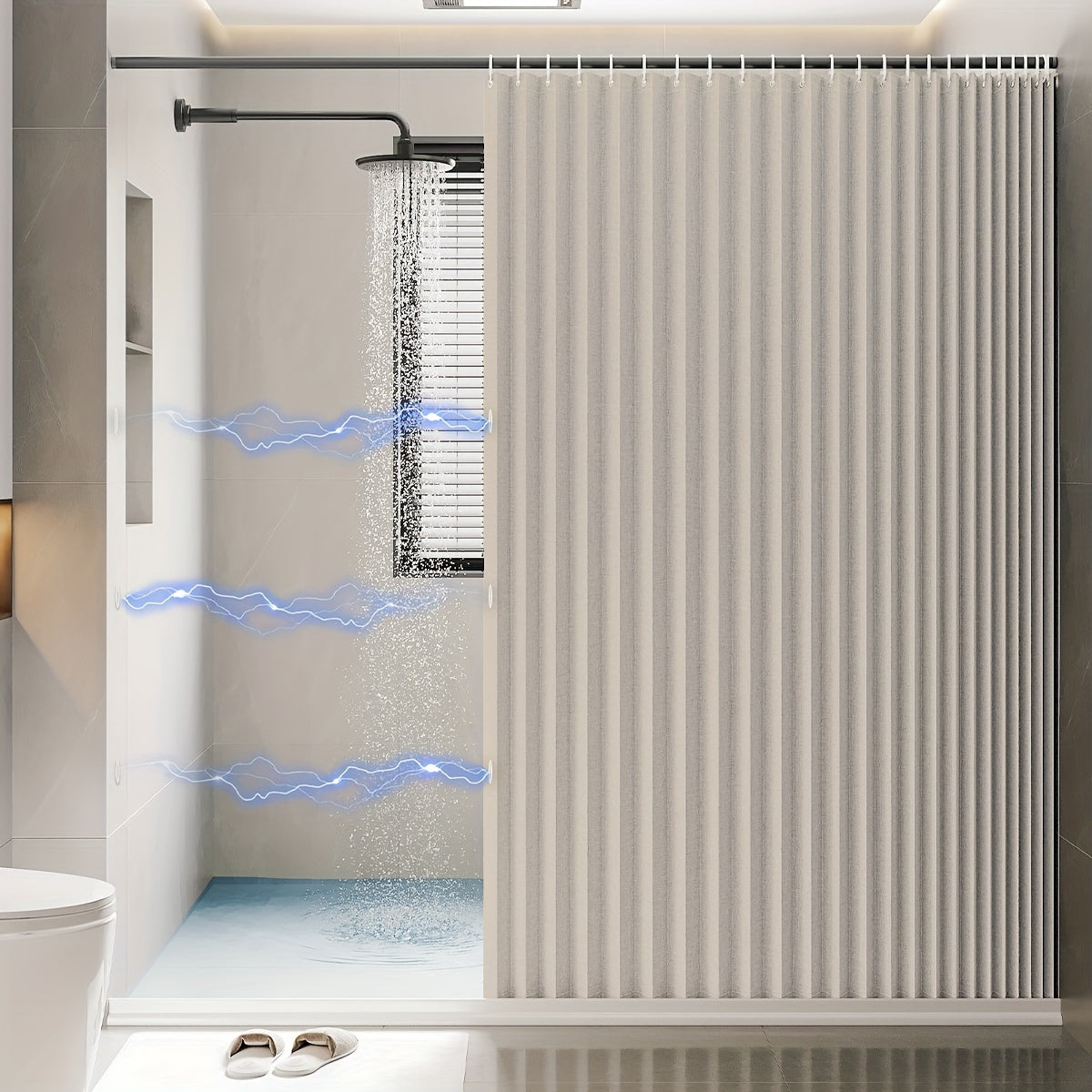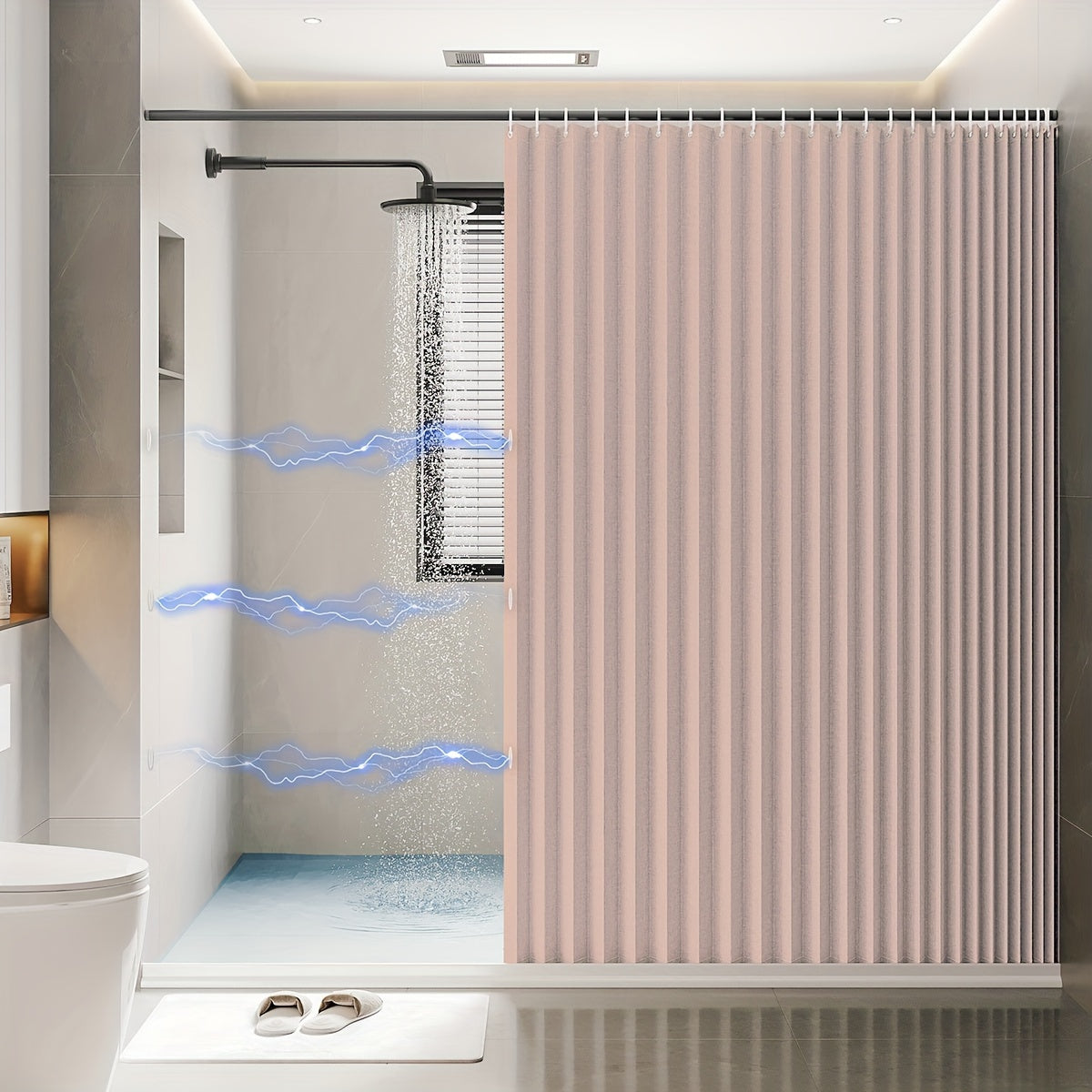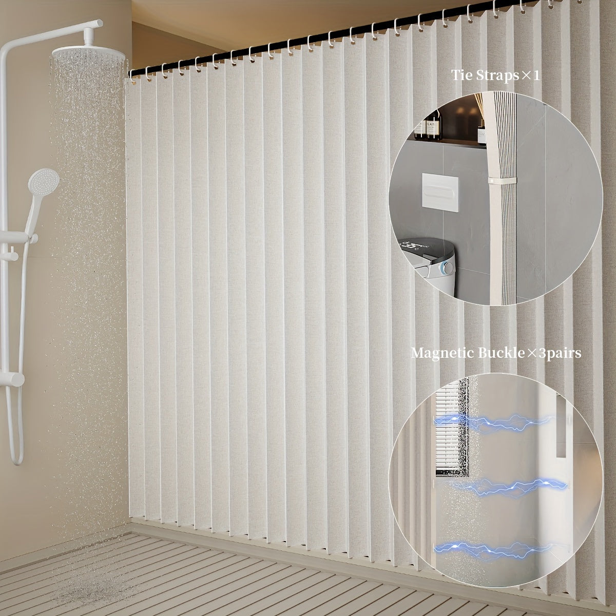 Suv o'tkazmaydigan, magnit so'rish bilan egiluvchan dush pardasi, hammom tualetini ajratish uchun ideal. Quruq va namni ajratish va teshik dizayni bilan osongina osish.