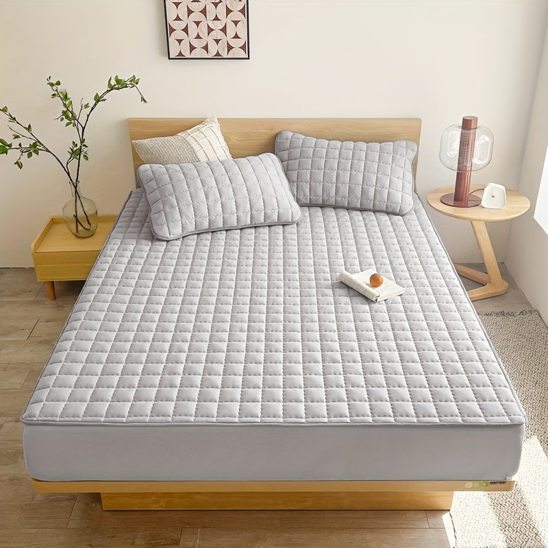 Suv o'tkazmaydigan matras himoyachisi - Yumshoq, qulay va tikuvli - Qattiq kulrang rang - Mashinada yuvish mumkin - Yotoqxona, mehmonxona, mehmonxona, kvartira yoki maktab uchun ideal