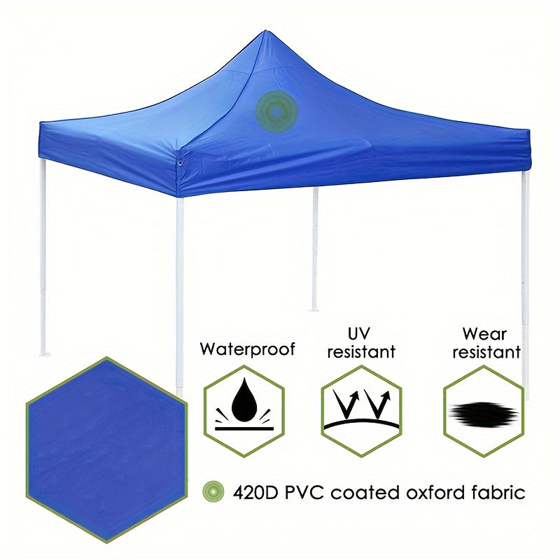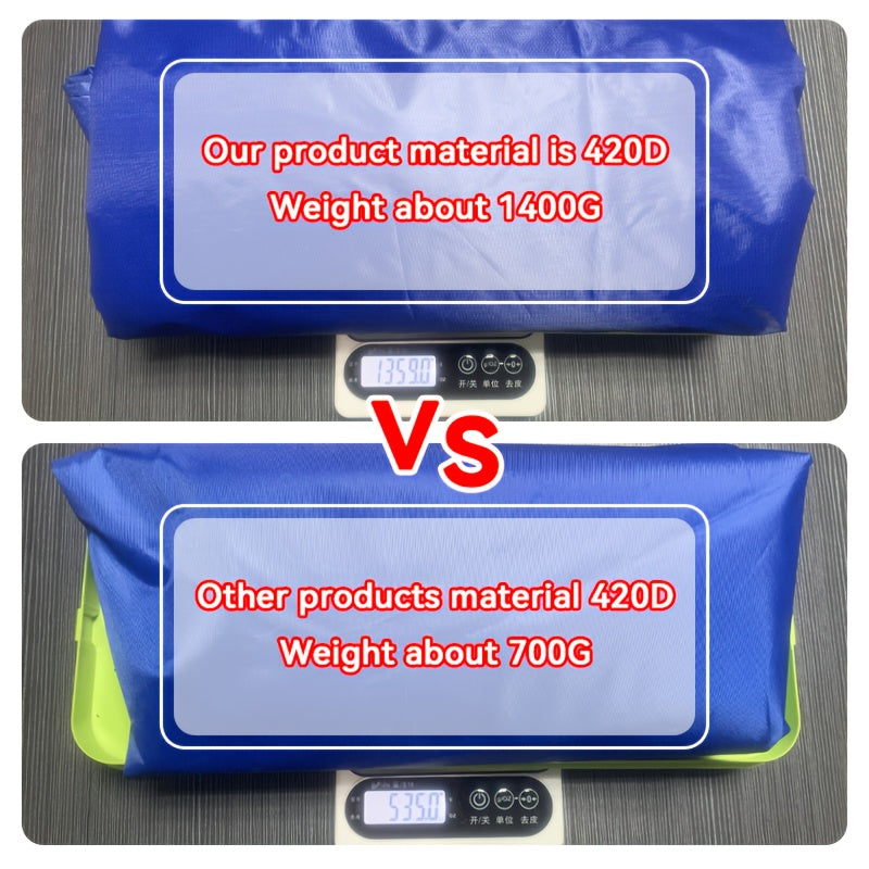 Yomg'irga chidamli ochiq maydon qopqog'i, ventilyatsiyali, UV-nuriga chidamli, elastik bog'ichlar bilan tayyorlangan mustahkam polyesterdan. Moviy rangda va 199.9 sm x 199.9 sm o'lchamda, har qanday ob-havoda himoya uchun.