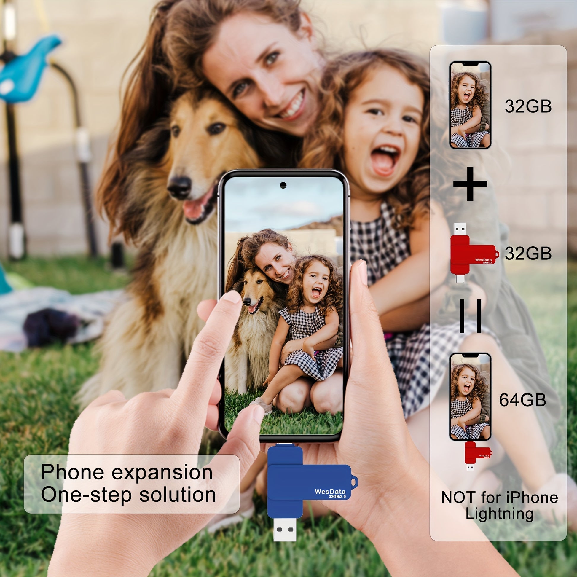 WesData USB-C flesh xotira qurilmasi 32GB, 64GB va 128GB xotira variantlari bilan, Android smartfonlari, planshetlar, noutbuklar, MacBook va PC bilan mos keladi. Turli tadbirlar uchun ideal sovg'a.