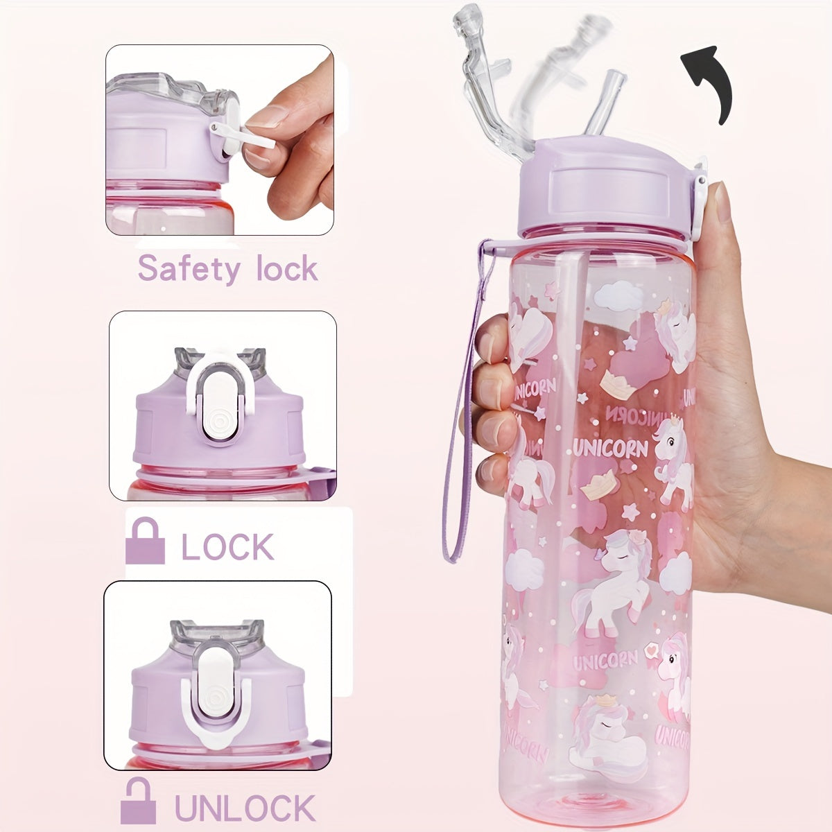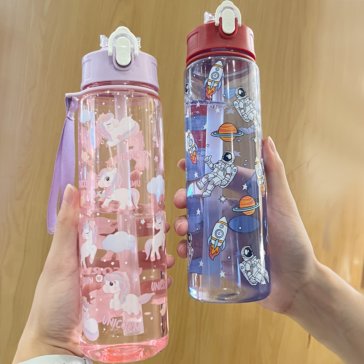 Multfilm Unicorn va Astronaut suyuqlik o'tkazmaydigan, PVCsiz suv shishasi, tashqi faoliyatlar uchun