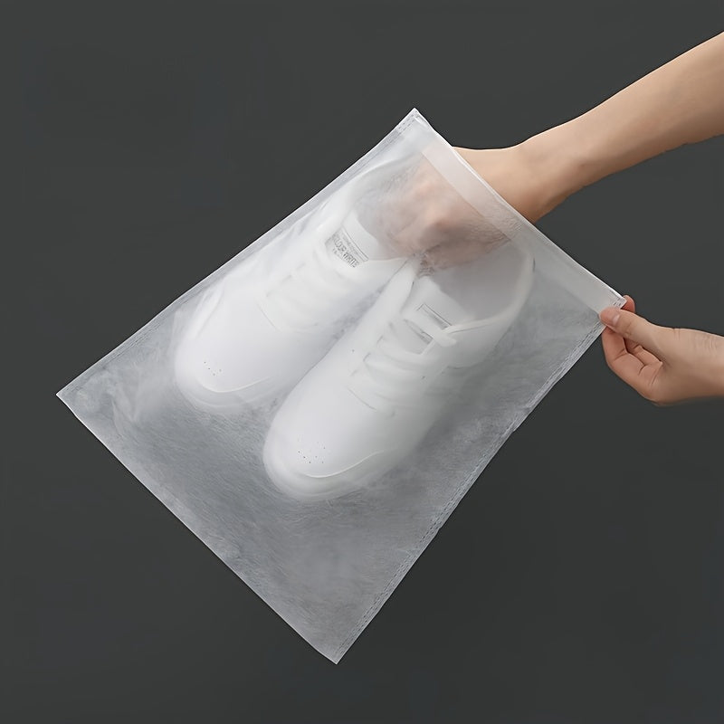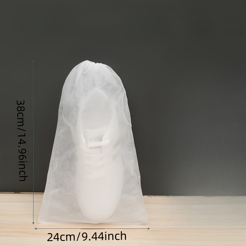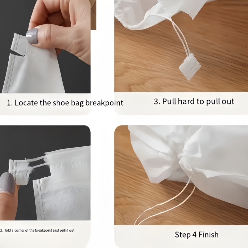 O'xshash nafas oladigan no'to'q matodan tayyorlangan oq tortma chang sumkasi - poyabzallarni himoya qilish va saqlash uchun ideal.