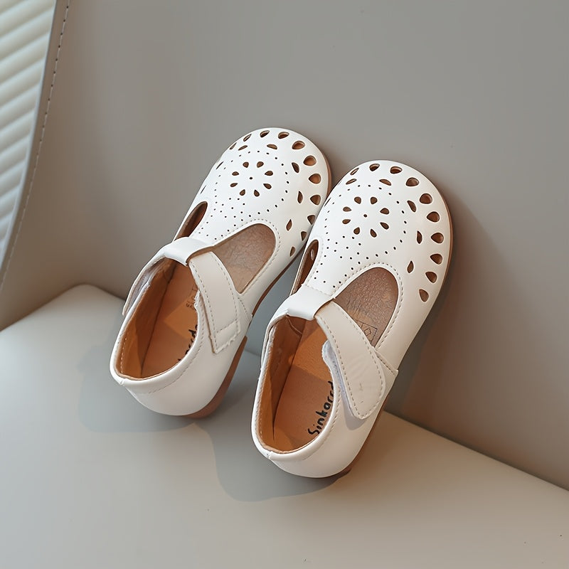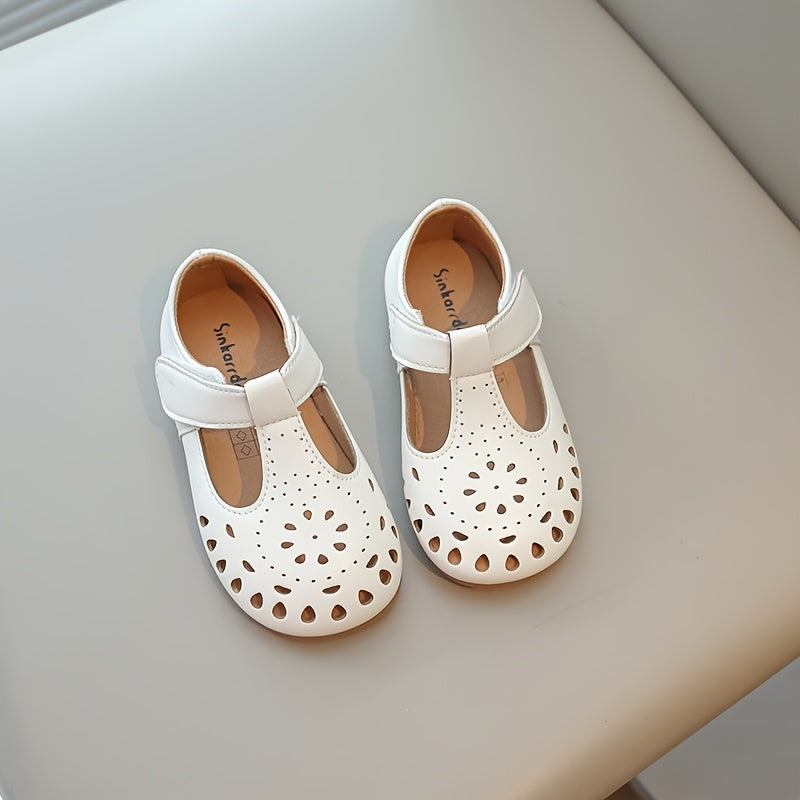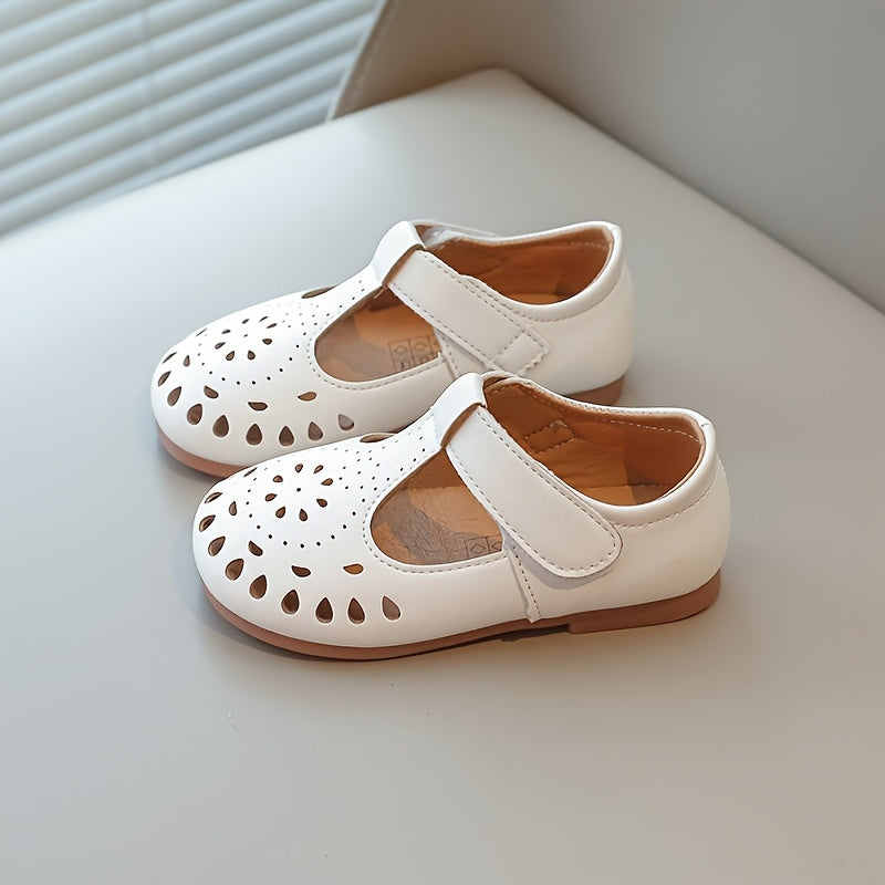 Oq Mary Jane qizlar poyabzallari, partiyalar va norasmiy kiyimlar uchun qopqoq va lenta bilan.