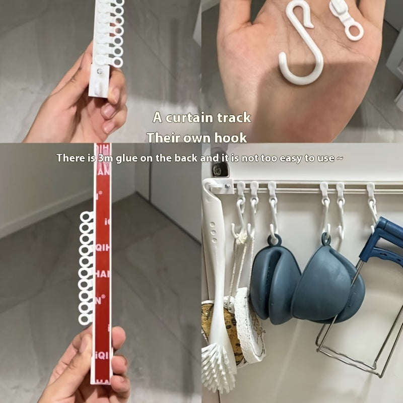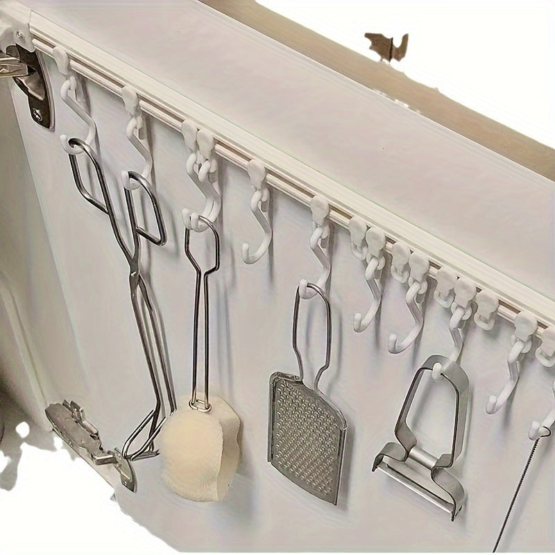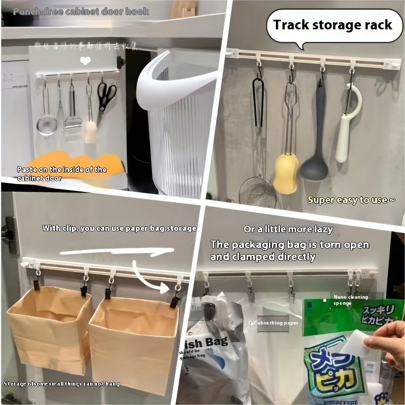 Oshxona asboblari uchun 6 ta ilgichli oq sirg'ash qopqog'i, burgusiz o'rnatish, devorlarga yoki eshiklarga osish uchun ideal. Mustahkam plastikdan tayyorlangan. Oshxona asboblarini tartibga solish uchun ajoyib.