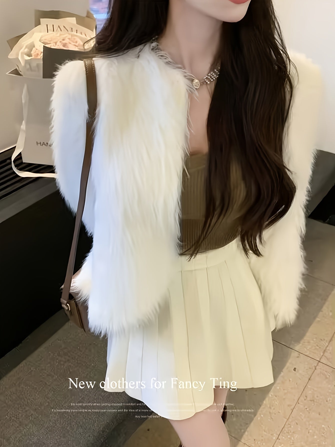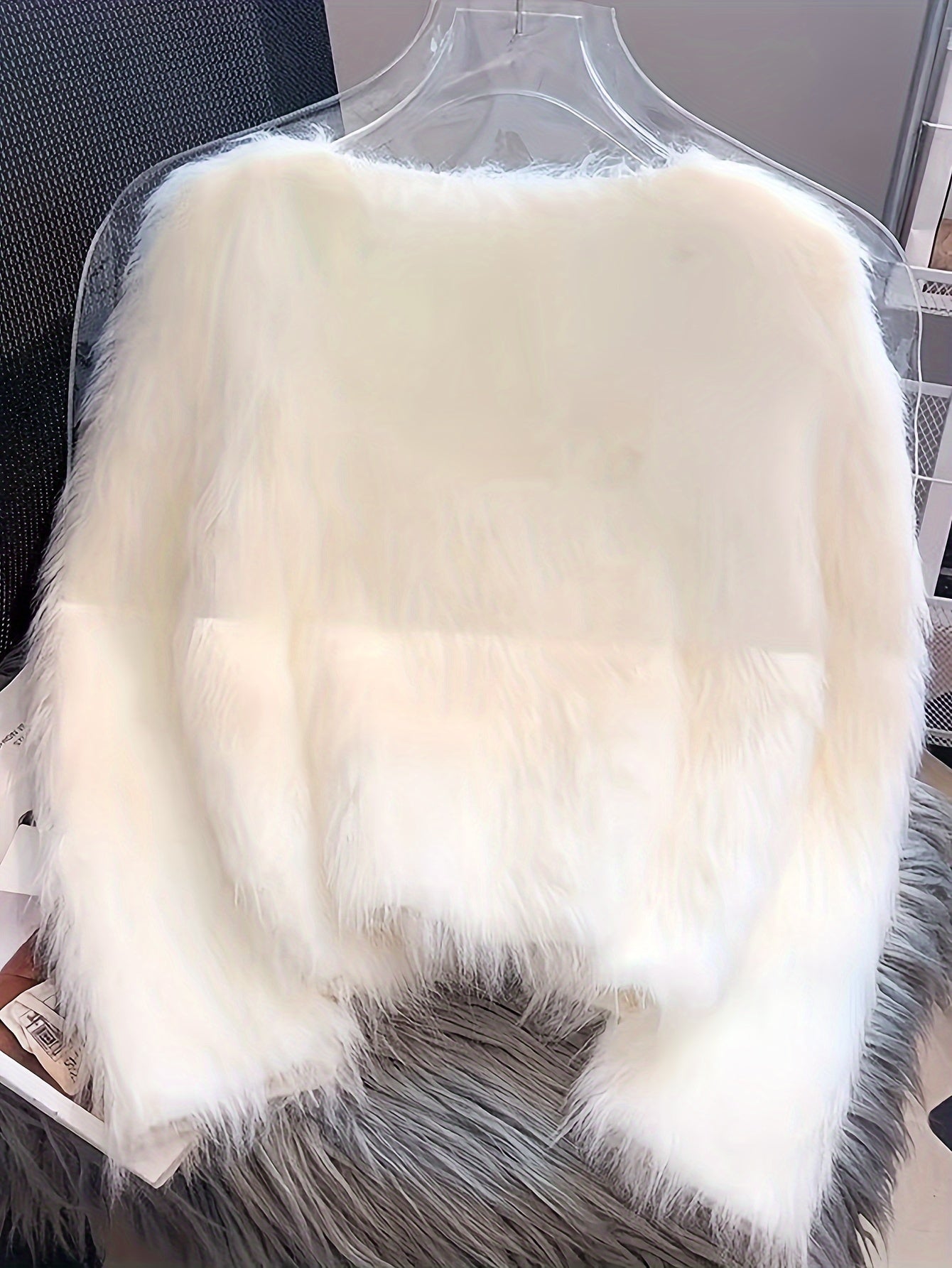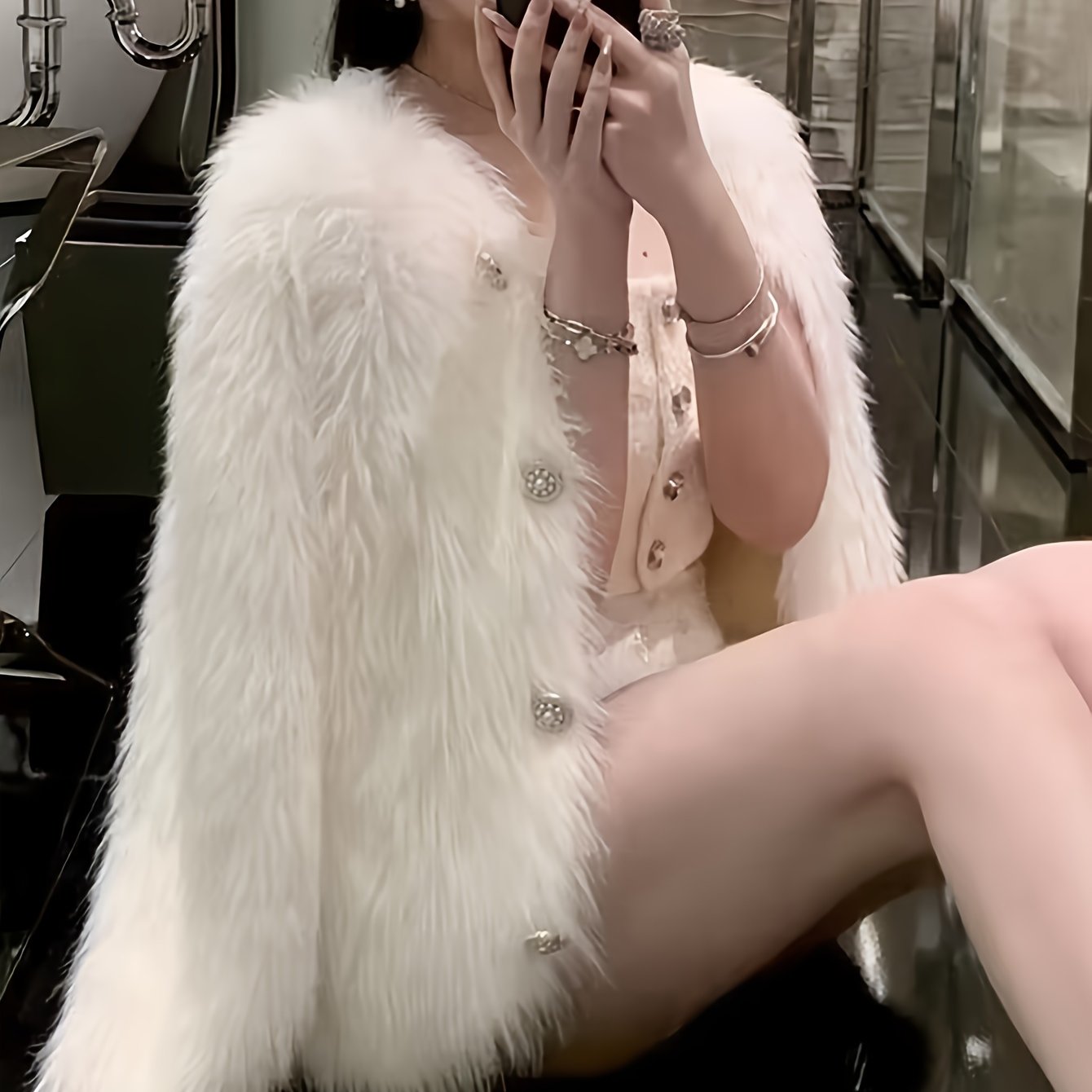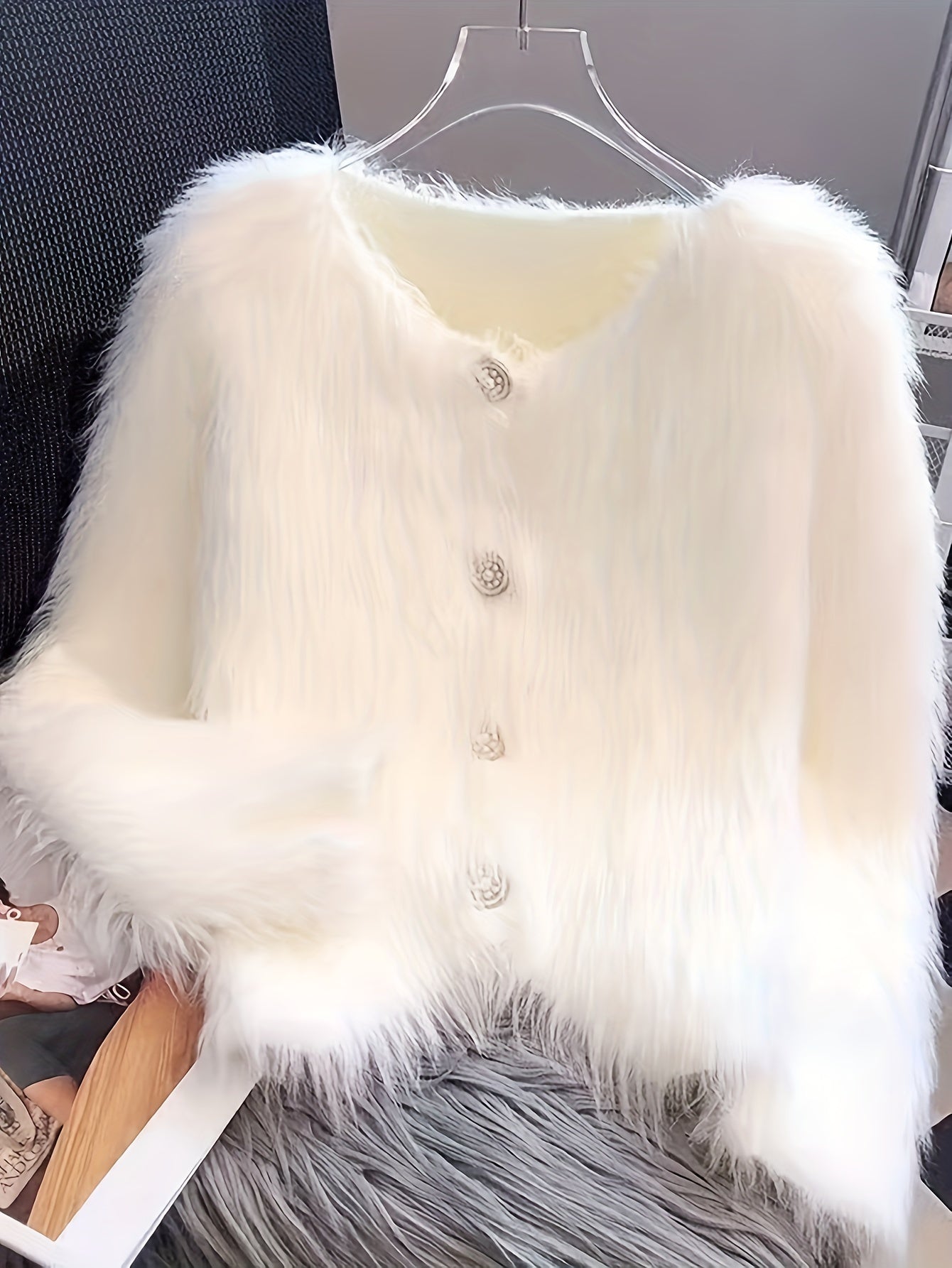 Ayollar uchun oq V-yuqori tugmachali ko'ylak, kuz va qish uchun mukammal.