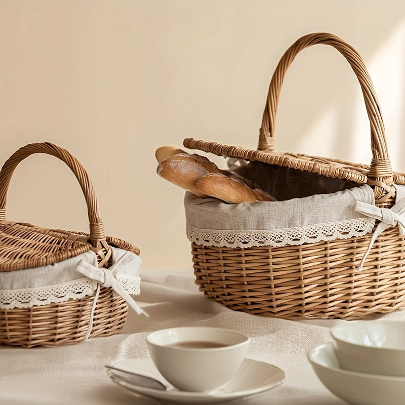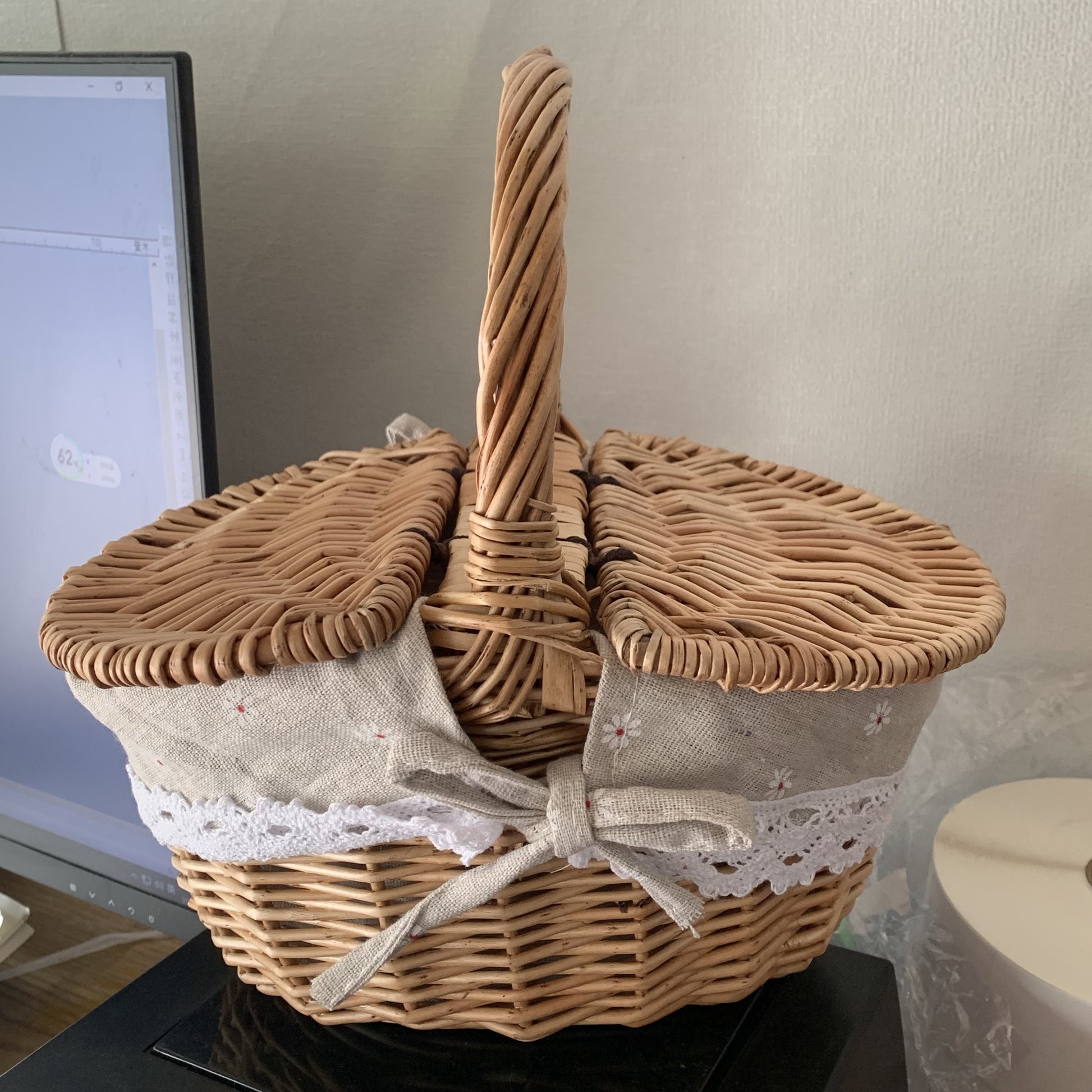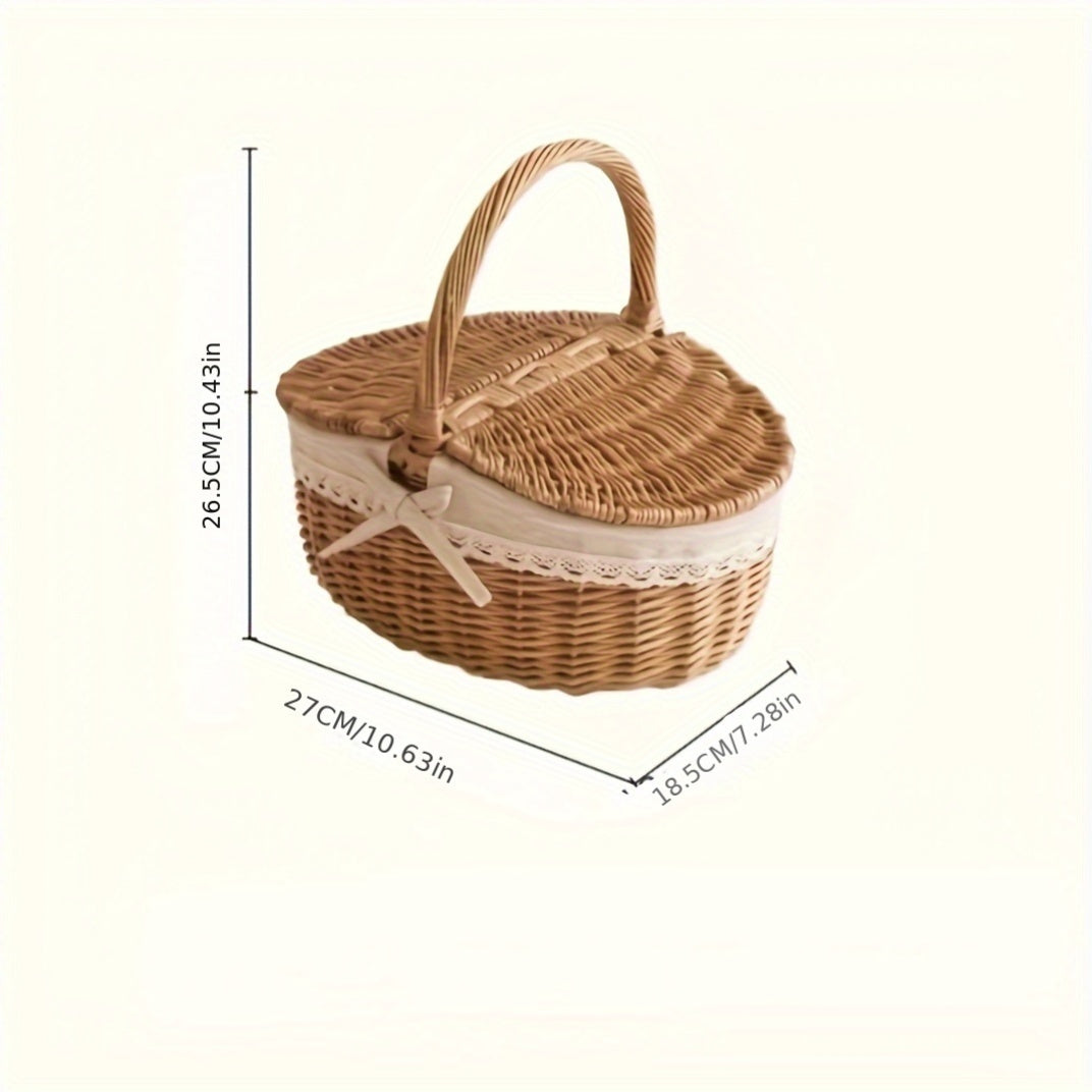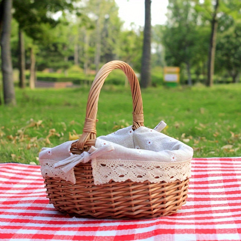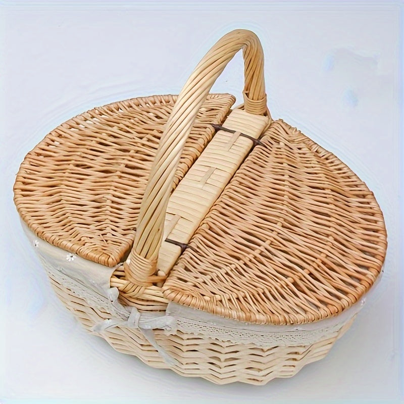 Qopqoqli to'qilgan piknik savati, izolyatsiyalangan tarmoq, bog' va o'tloq uchun ochiq saqlash, yog'och ramka, pikniklar va bog'dorchilik uchun ideal.