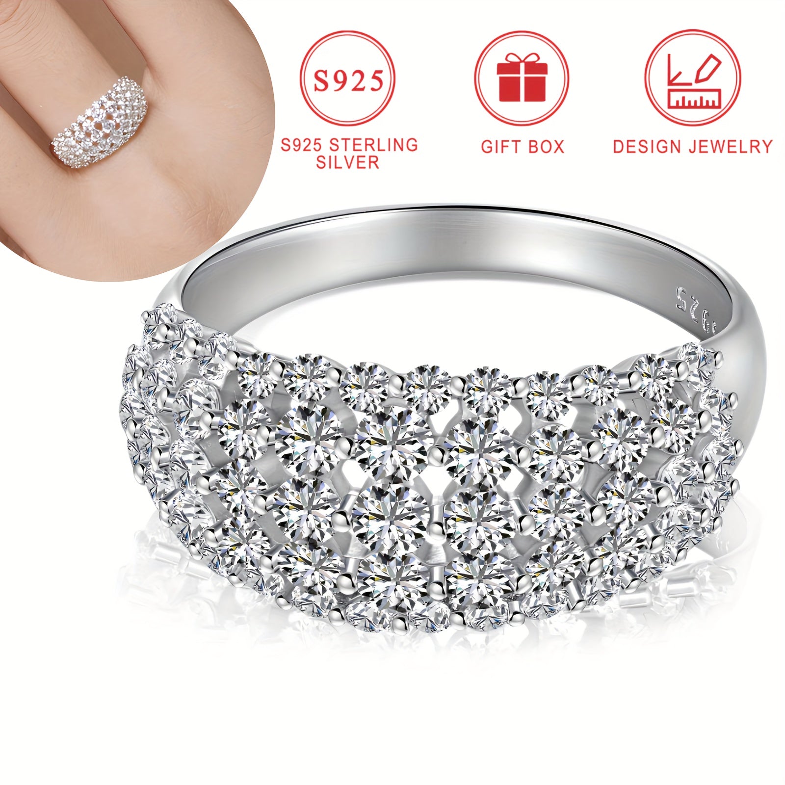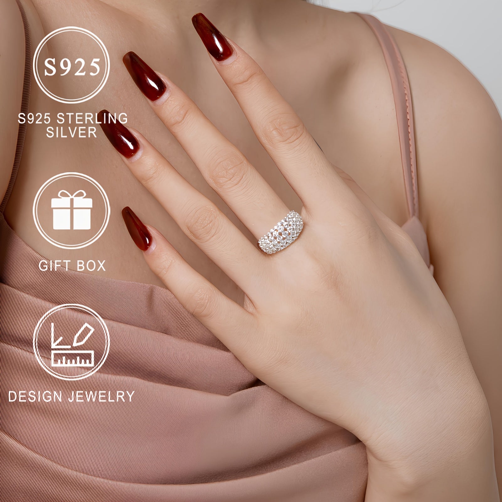 Keng Versiya Ayollar Halqasi Qiyshiq Olmosli Sintetik Zirkoniya Halqasi - Yuqori Sifatli Sterling Kumush (S925) - Zamonaviy Dizayn - Marjon Zargarlik - Sevishganlar Kuni, Onalar Kuni, Ramazon, Eid al-Fitr uchun Mukammal Sovg'a - Sovg'a qutisida keladi